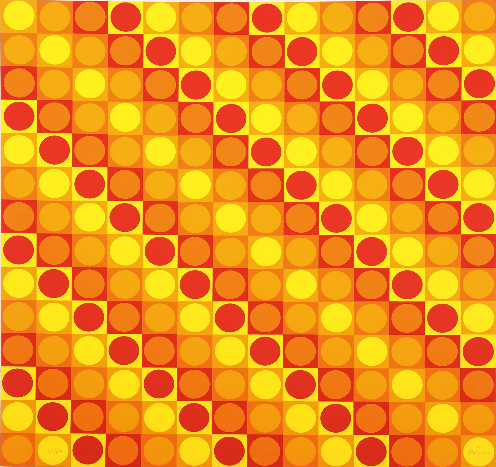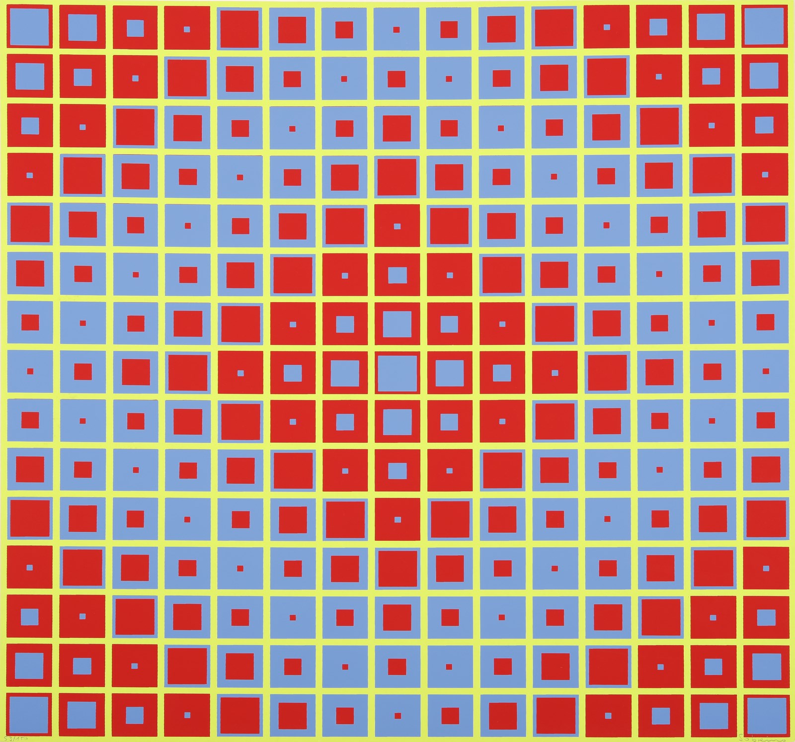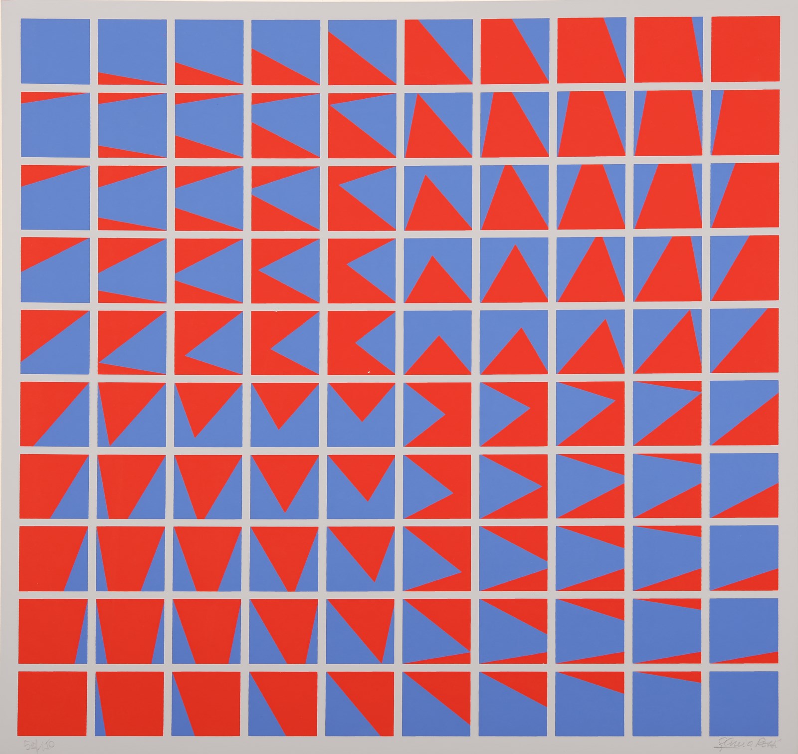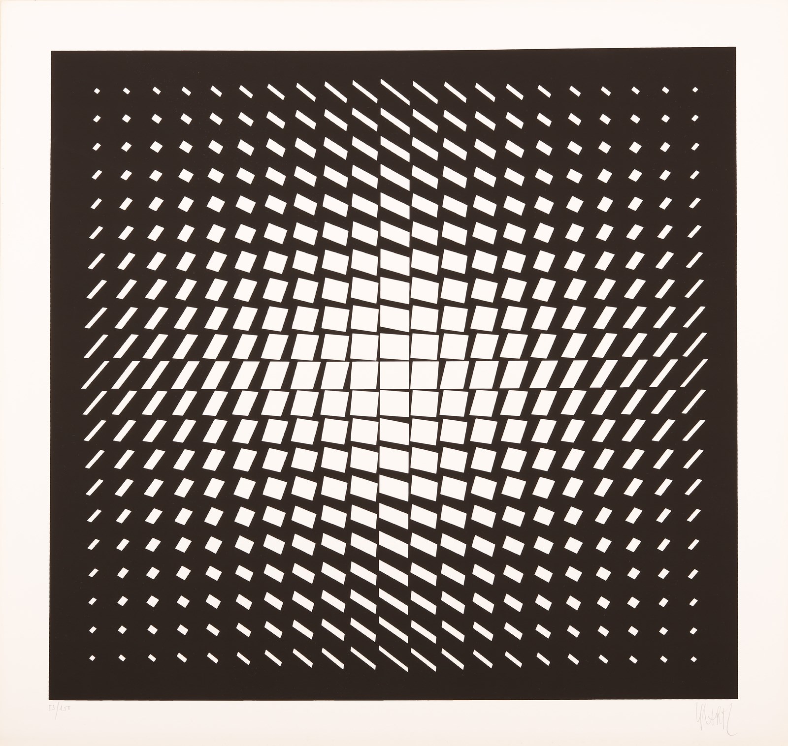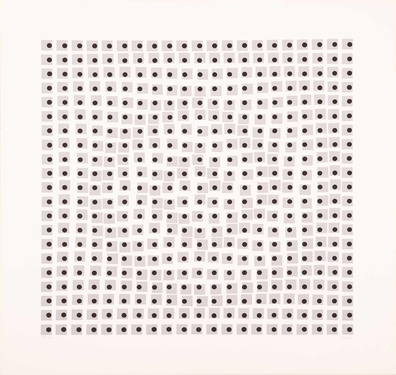 GRAV (Groupe de Recherche d'Art Visuel) Grav, Groupe de recherche d'art visuel 1960-1968. (6 fogli). Serigrafia (cartella completa). Cm 70,00 x 70,00. 53/150. Cartella realizzata in occasione della mostra retrospettiva, Lago di Como, 20/30 settembre 1975 a cura di Luciano Caramel del Groupe de Recherche d'Art Visuel ( Garcia Rossi, Le Parc, Morellet, Sobrino, Stein, Yvaral). Tutte le opere presentano firma e tiratura in basso a matita. Editore: Galleria Team Colore, Milano. Stampatore: Sam Villa, Milano. Presenti difetti. Cartella contenitiva in cartone originale e colophon.