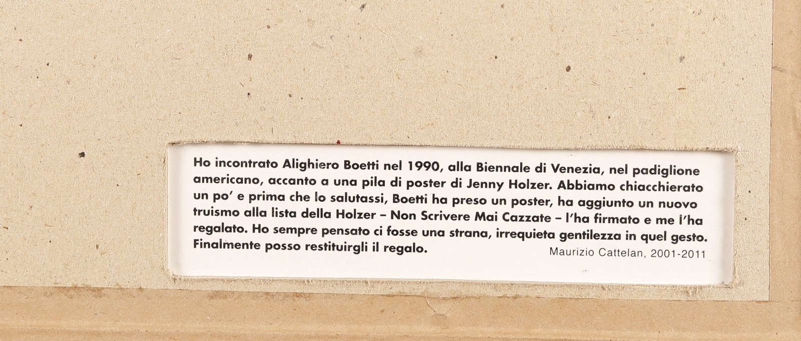 CATTELAN MAURIZIO (n. 1960) Ho incontrato Alighiero Boetti alla Biennale di Venezia nel 1990. Poster. Cm 48,00 x 68,00. . Cornice presente