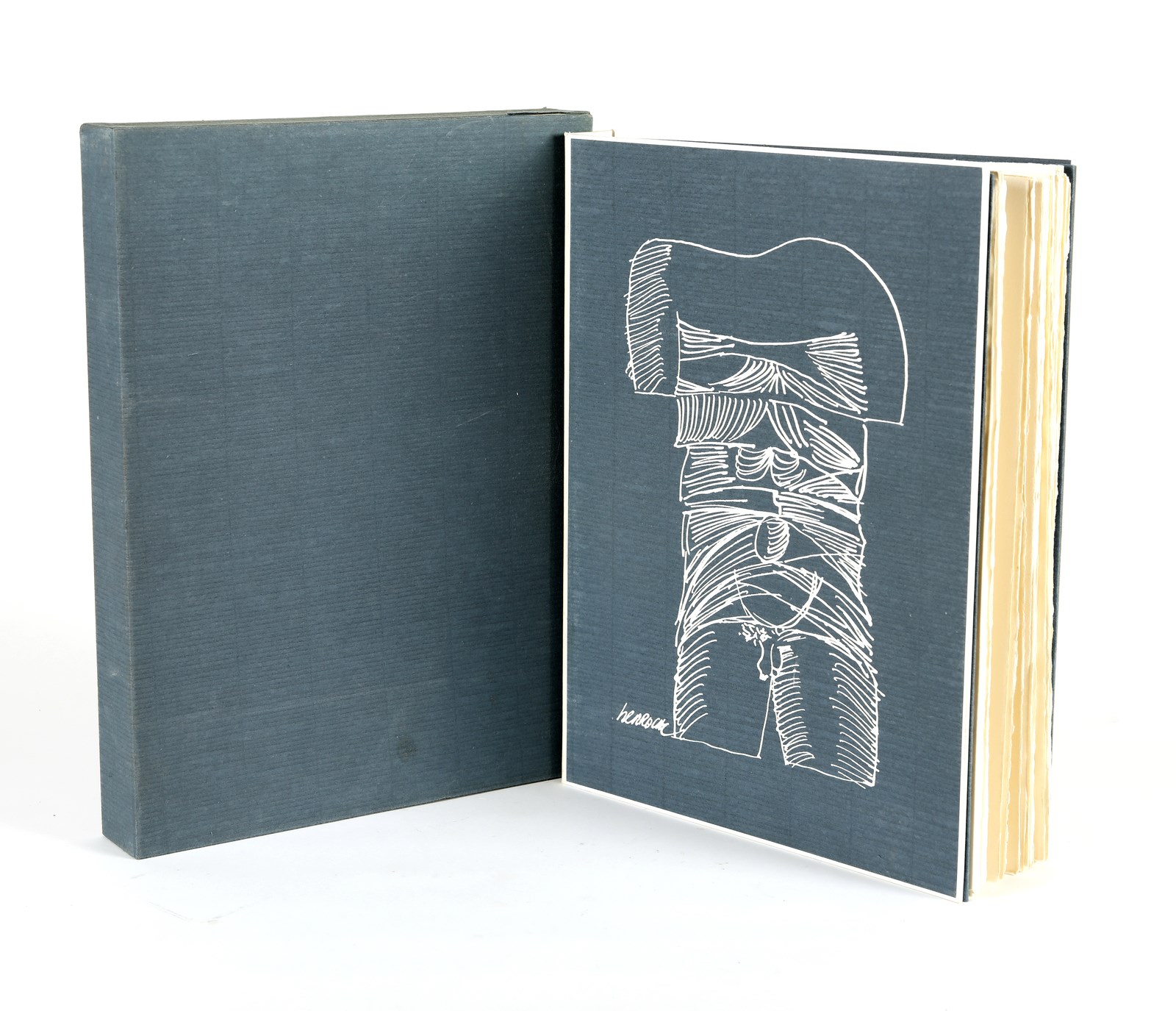 BERROCAL MIGUEL ORTIZ (1933 - 2006) Anabase. Libro d'artista. Cm 26,00 x 36,00 x 4,50. Esemplare 70/122. Firma incisa in copertina. Tiratura e firma a matita in ultima pagina. Edizioni Le Rame/Stamperia Valdonega, Verona 1967. Questa edizione dell'Anabase di Saint-John Perse seguita dalle traduzioni di T.S. Eliot e Giuseppe Ungaretti. Illustrata con nove incisioni di linoleum a colori da Berrocal. E' stata impressa in occasione dell'ottantesimo compleanno dell'autore dalla stamperia Valdonega di Giovanni Mardersteig, in carattere bembo, su carta a mano di Pescia, in 122 esemplari. La legatura, in carta Roma di Fabriano, con due disegni dell'artista, stampati in rilievo sulla copertina, è stata eseguita da Giovanni De Stefanis, i linoleum, dopo la stampa, sono stati biffati.