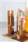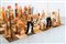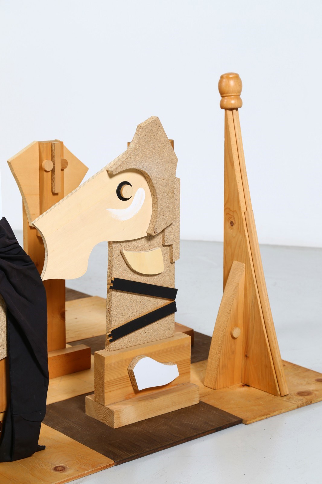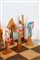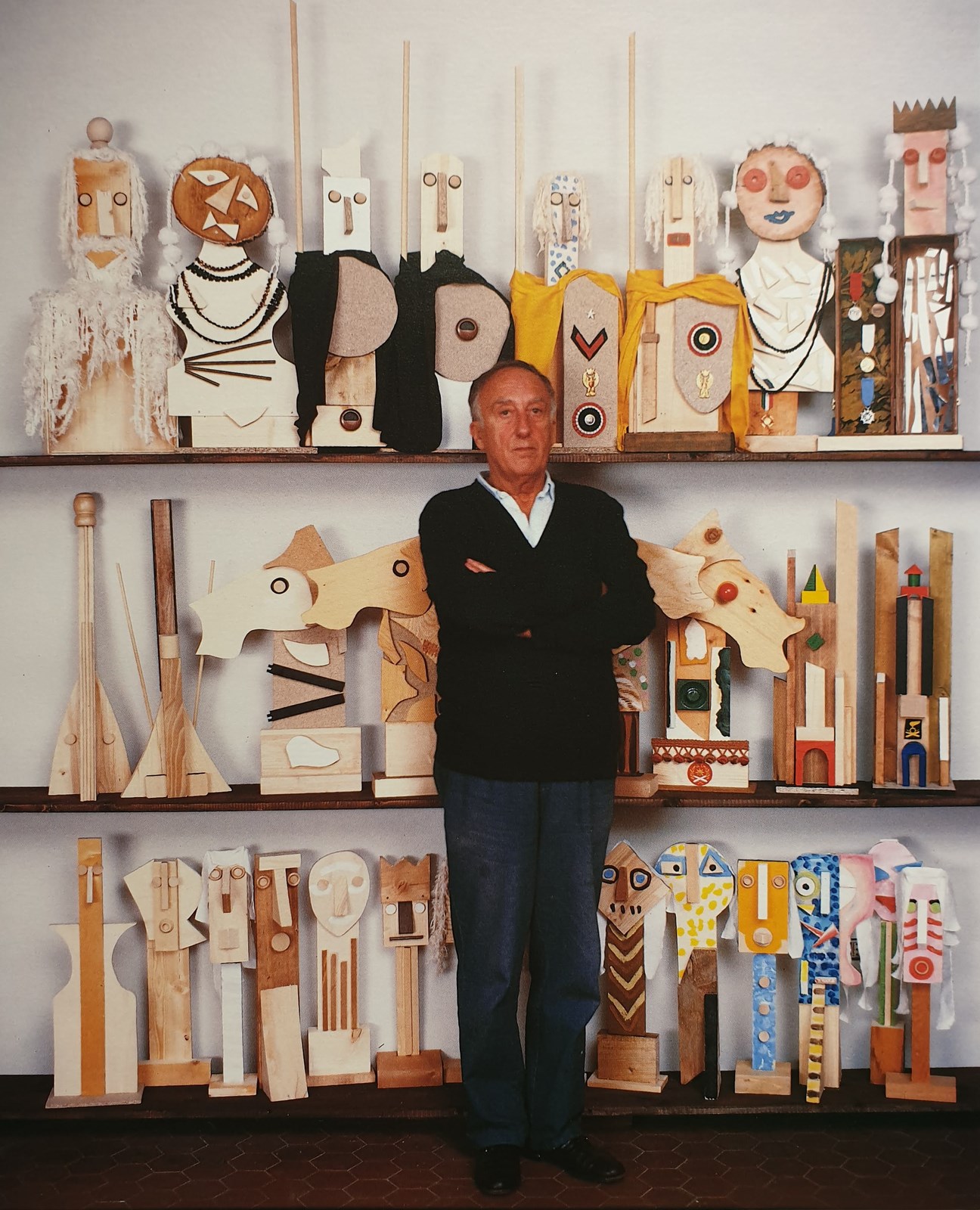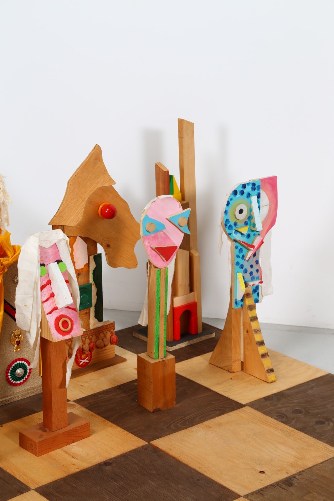 BAJ ENRICO (1924 - 2003) Il gioco degli scacchi. . 1988. Legno. Cm 272,00 x 75,00 x 272,00. Edizione completa: 30 + V. Esemplare: 12. Mastrogiacomo Edizioni - Padova. L'opera è costituita da 32 sculture (la cui altezza media è di 75 cm) ognuna diversa dall'altra, eseguite completamente a mano su prototipo dell'artista e 32 tavolette da accostare su un piano o sul pavimento in modo da creare una scacchiera. Il materiale principalmente usato è il legno e, visto l'ingombro della scacchiera è possibile esporre i pezzi su una scaffalatura a tre ripiani simile a una libreria occupando a parete uno spazio di 2,50 metri in altezza per 2,50 metri in larghezza per 25 cm di profondità. Le tavolette di 34x34 cm possono essere raccolte e impilate. Ogni pezzo reca un sigillo e la numerazione a mano. Autentica su fotografia firmata dall'artista e con sigillo dell'editore. L'opera è accompagnata dal libro "Gli Scacchi di Baj", Mastrogiacomo Edizioni - Padova, con introduzione di Pietro Bellasi e testi di Olivier Revault d'Allones.
