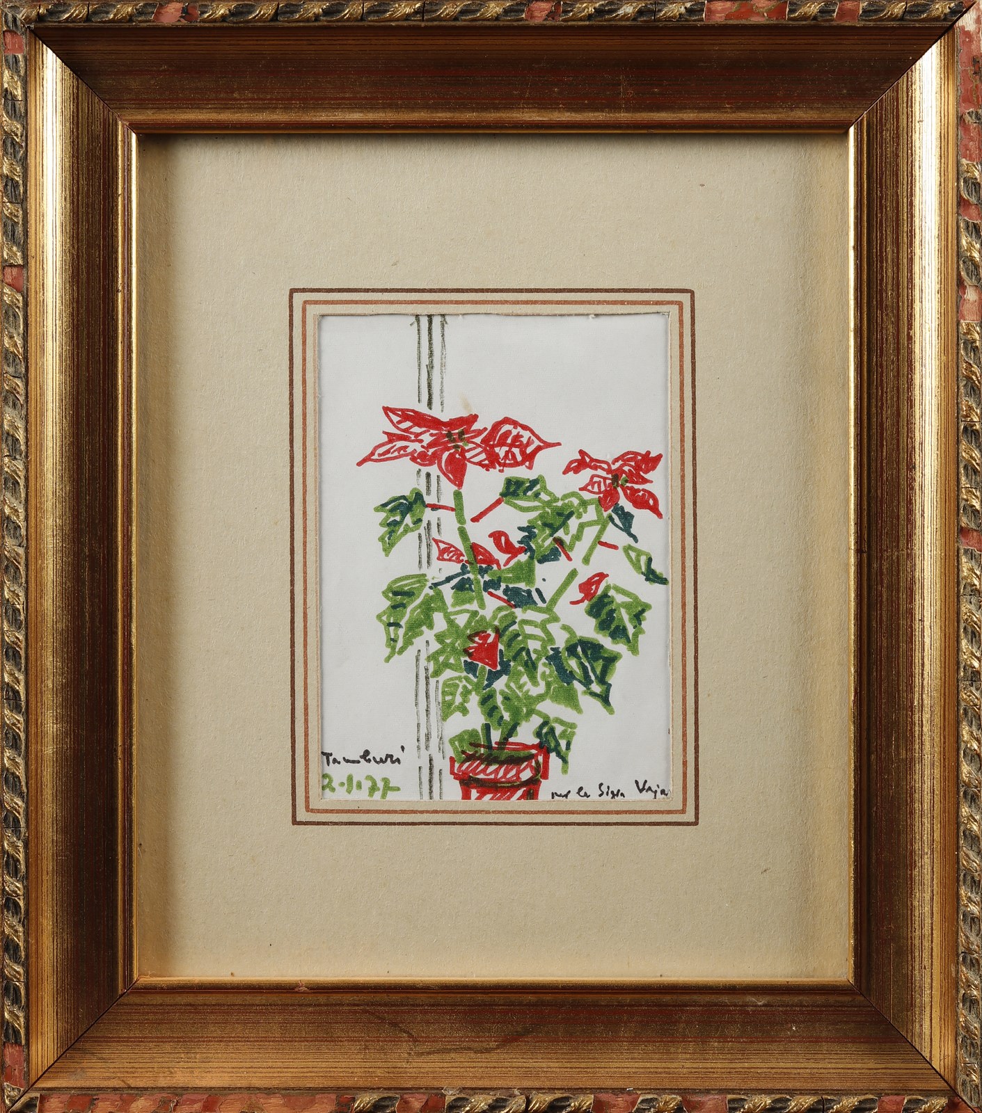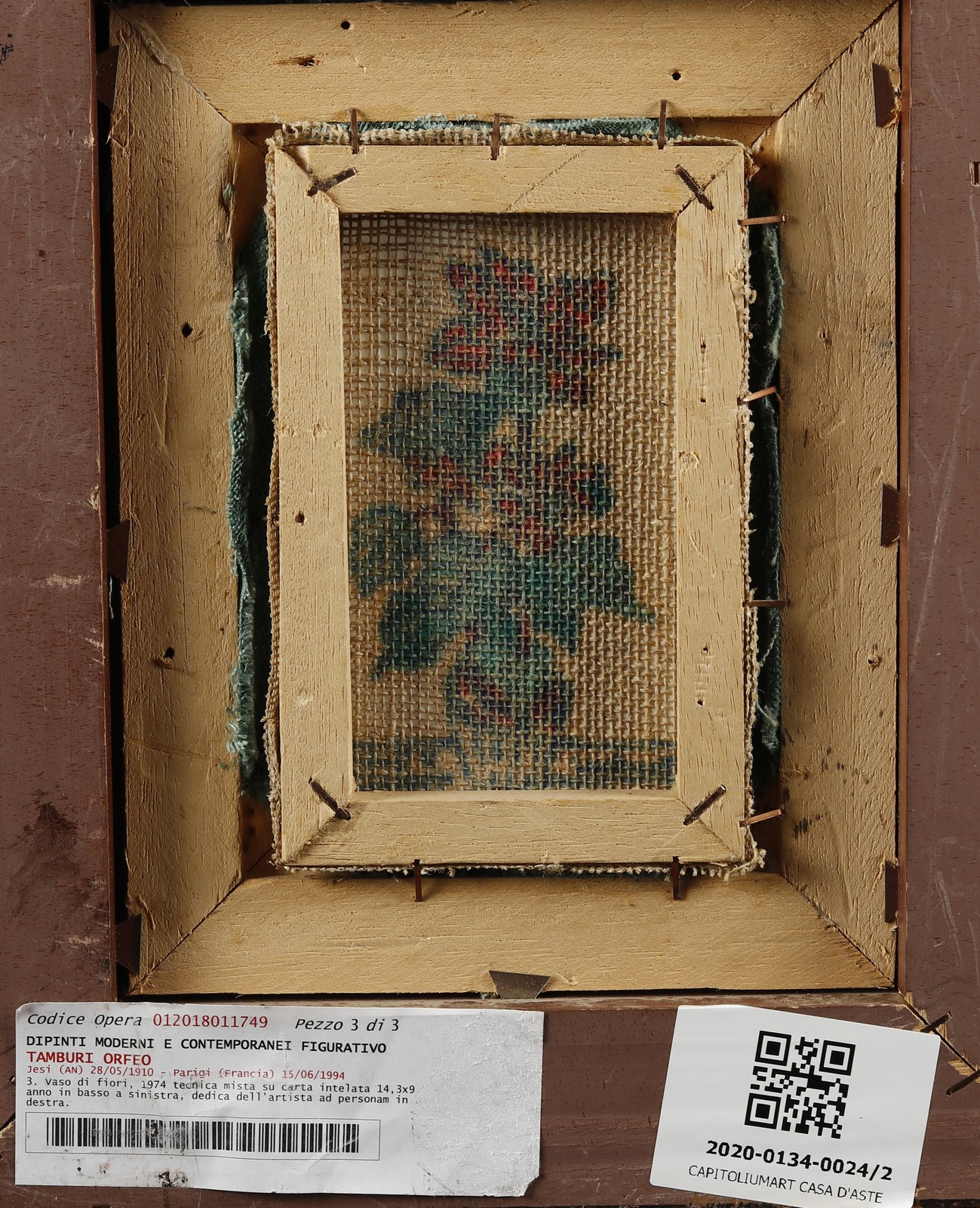 TAMBURI ORFEO (1910 - 1994) Lotto composto da n.2 opere. Fiori. Tecnica mista su carta. . Ogni opera è firmata e datata in basso a sinistra. Dimensioni opere: 14x9 cm, 11x8 cm. Provenienza: Meeting Art Casa d'aste. Cornice presente