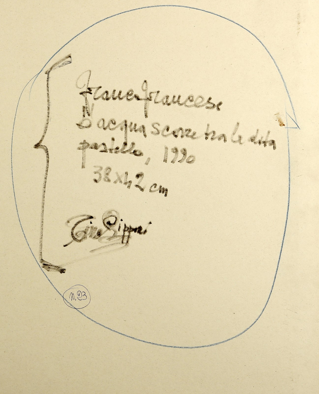 FRANCESE FRANCO (1920 - 1996) Acqua scorre tra le dita. . 1990. Pastelli su carta. Cm 42,00 x 38,00. Firma e anno in basso a destra. Pubblicazione: Franco Francese 1920-1996 a cura di Tino Gipponi ed Elena Pontiggia, Electa edizioni, Milano, 2011, tav.1535. Cornice presente