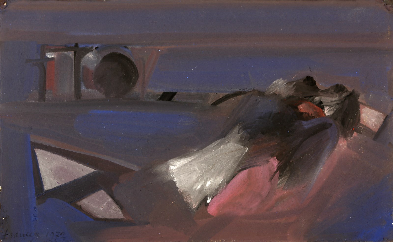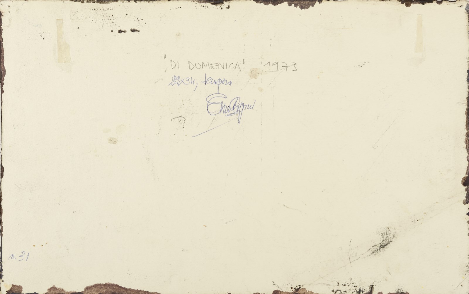 FRANCESE FRANCO (1920 - 1996) Di Domenica. 1972. Tecnica mista su cartoncino. Cm 34,00 x 22,00. Firma e anno in basso a sinistra. Lievi difetti.