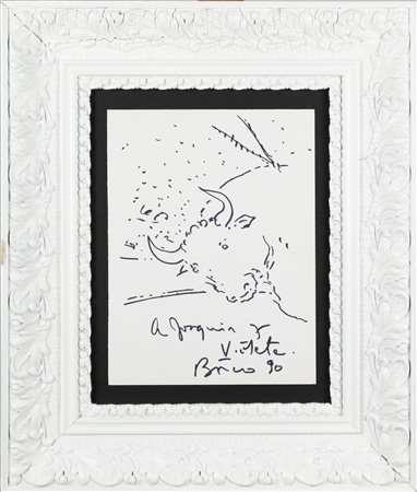 BOTERO FERNANDO (n. 1932) Senza titolo. 1990. Disegno su carta. Cm 20,00 x 30,00. Dedica, firma e anno in basso a destra. Dedicato a Gioacchino Cantone. Cornice presente