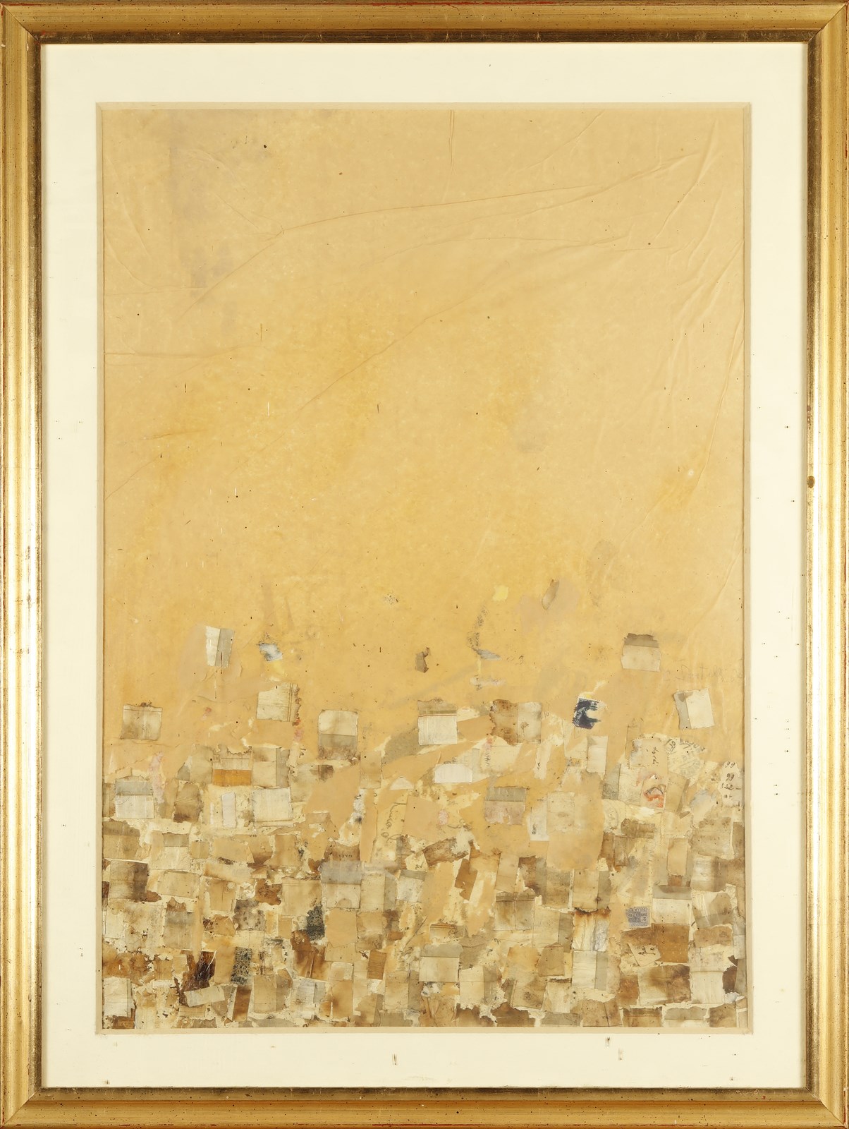 SARTELLI GERMANO (n. 1925) Senza titolo. 1960. Tecnica mista e collage su cartone. Cm 42,00 x 60,00. Firma e anno in basso a destra. Cornice presente