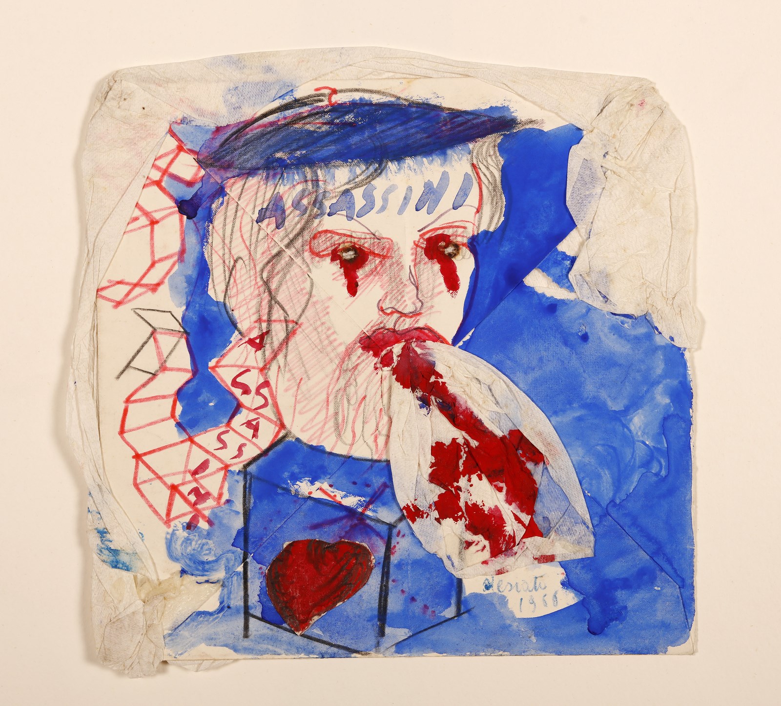 DESIATO GIUSEPPE (n. 1935) Senza titolo. 1966. Tecnica mista e collage su carta. Cm 20,00 x 20,00. Firma e anno in basso a destra.