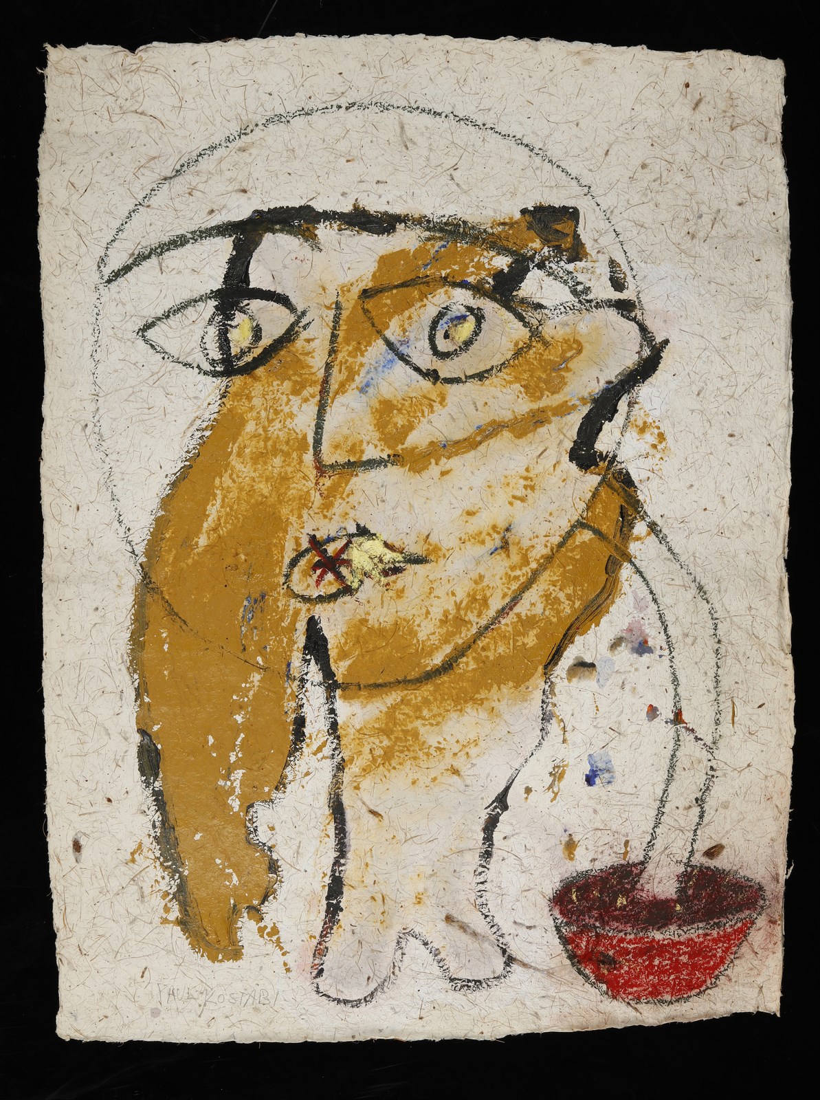KOSTABI PAUL INDREK (n. 1962) Lost in translation. 1999. Olio su carta. Cm 55,00 x 76,00. Firma in basso a sinistra. Al retro titolo, firma e anno.Certificato di autenticità Galleria d'arte contemporanea e dintori, Como. Certificato di autenticità Follin Gallery, New York.