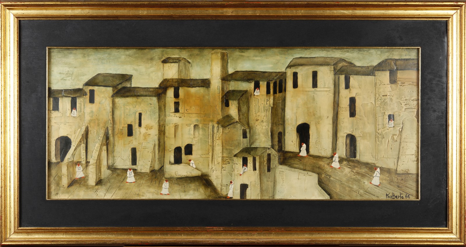 PROIETTI NORBERTO (1927 - 2009) Senza titolo. 1966. Olio su tavola. Cm 80,00 x 32,00. Firma e anno in basso a destra. Cornice presente
