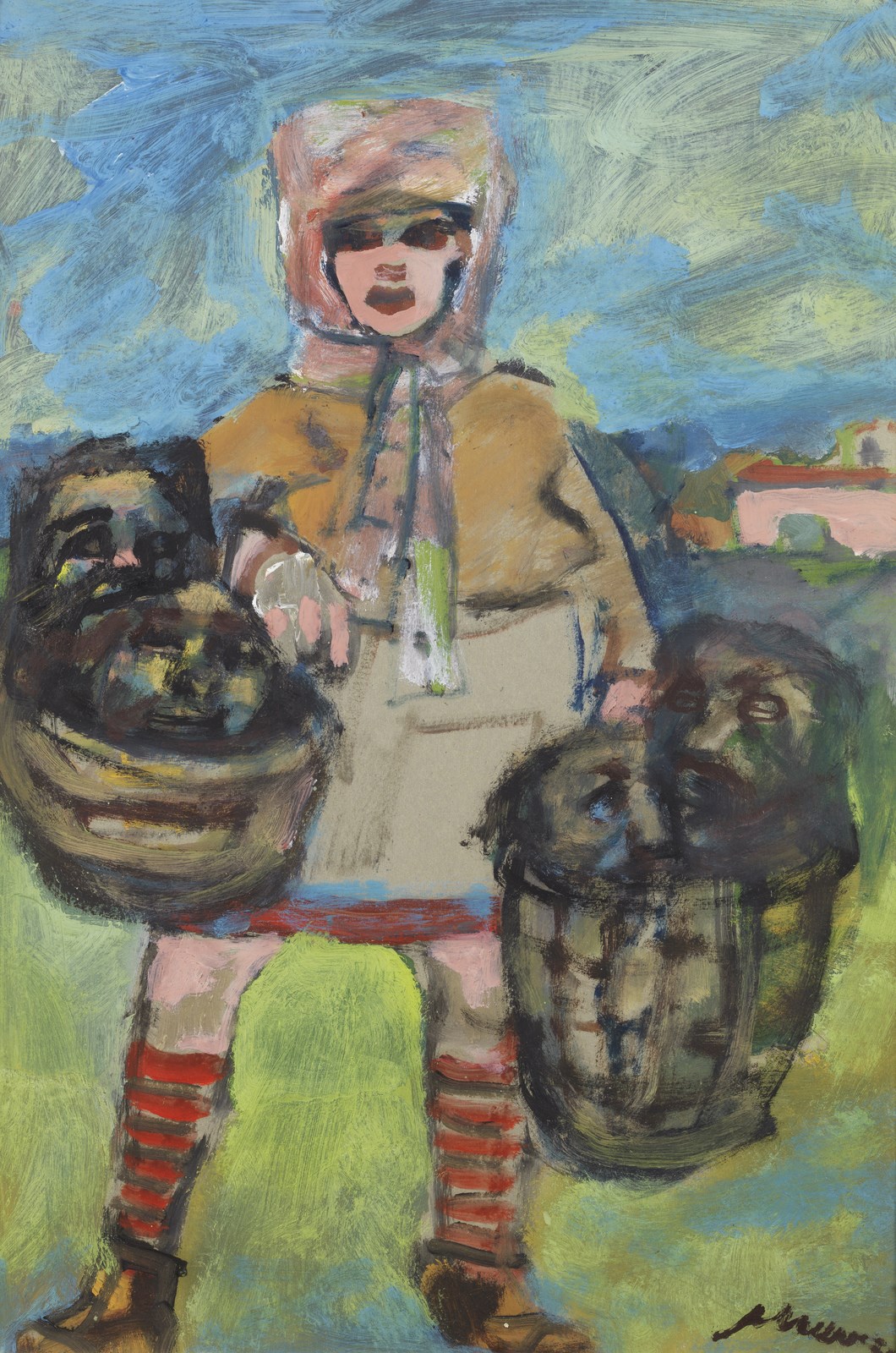 MACCARI MINO (1898 - 1989) Senza titolo. 1962. Olio su cartone pressato. Cm 35,00 x 50,00. Firma in basso a destra. Opera archiviata presso l'Archivio Mino Maccari, Cinquale come da documentazione fotografica allegata all'opera riportante il relativo numero d'inventario. Cornice presente
