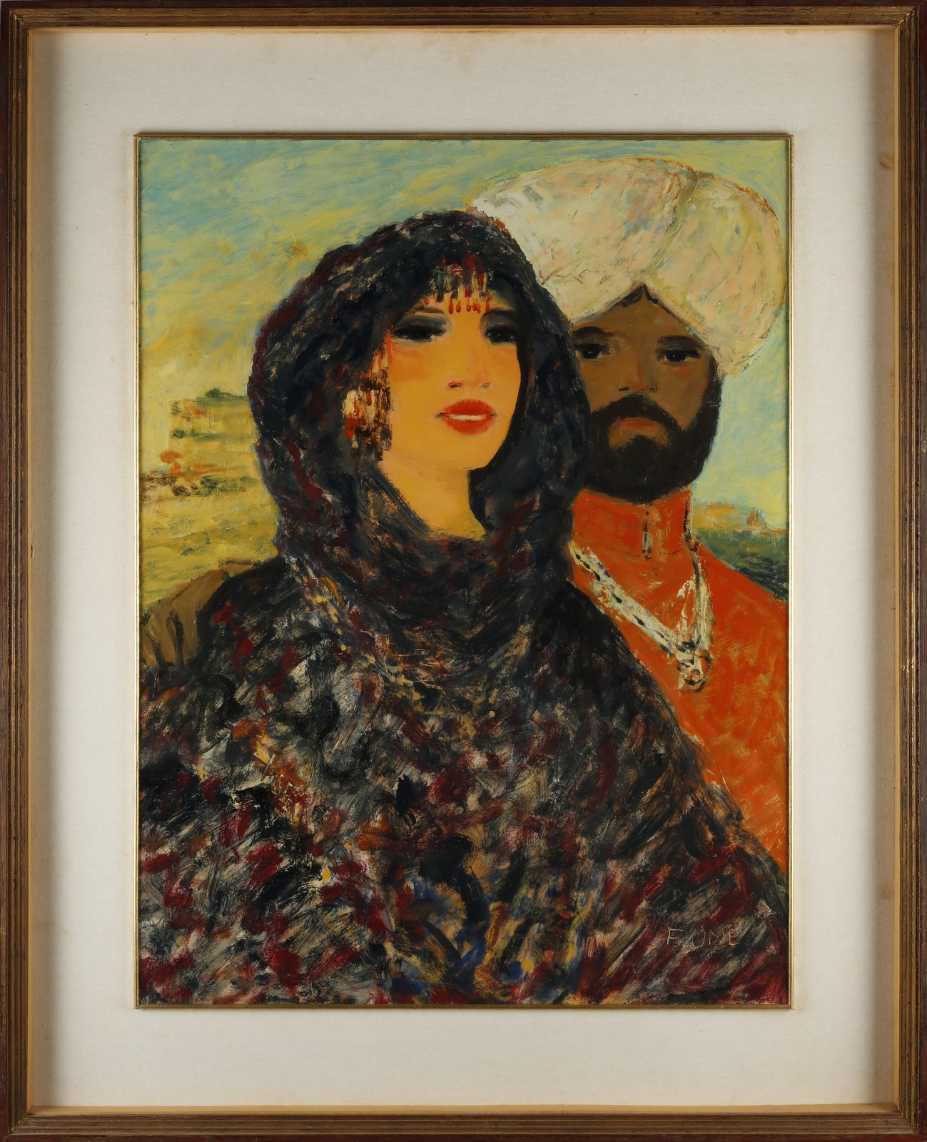 FIUME SALVATORE (1915 - 1997) Senza titolo. Olio su tela . Cm 53,00 x 70,00. Firma in basso a destra. Al retro cartiglio descrittivo Galleria L'Isola. Autentica dell'artista su fotografia. Provenienza: Galleria d'arte L'isola. Cornice presente