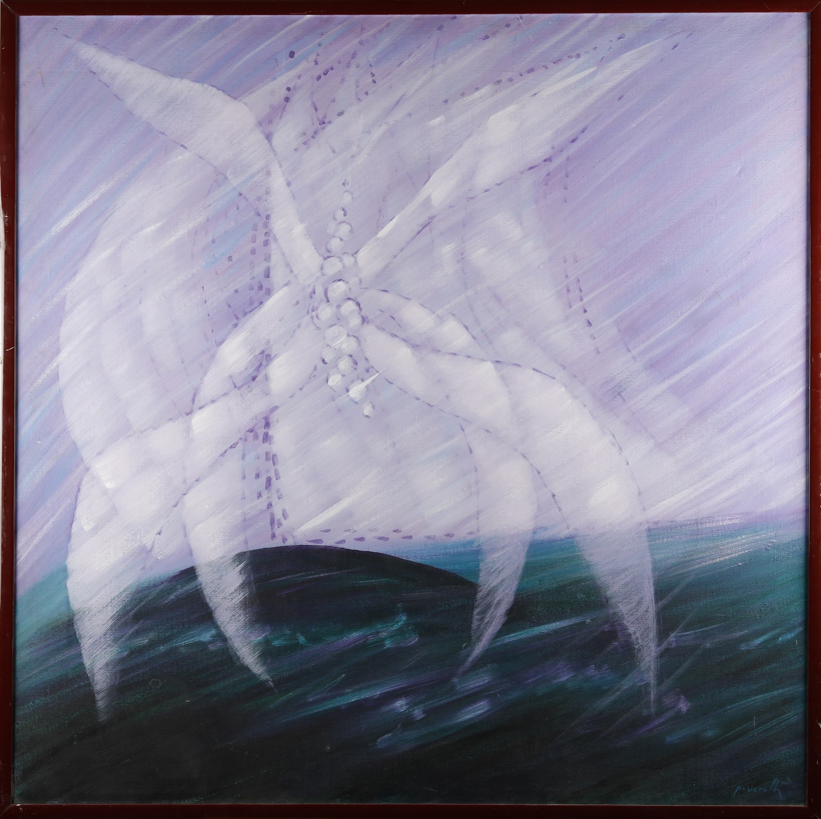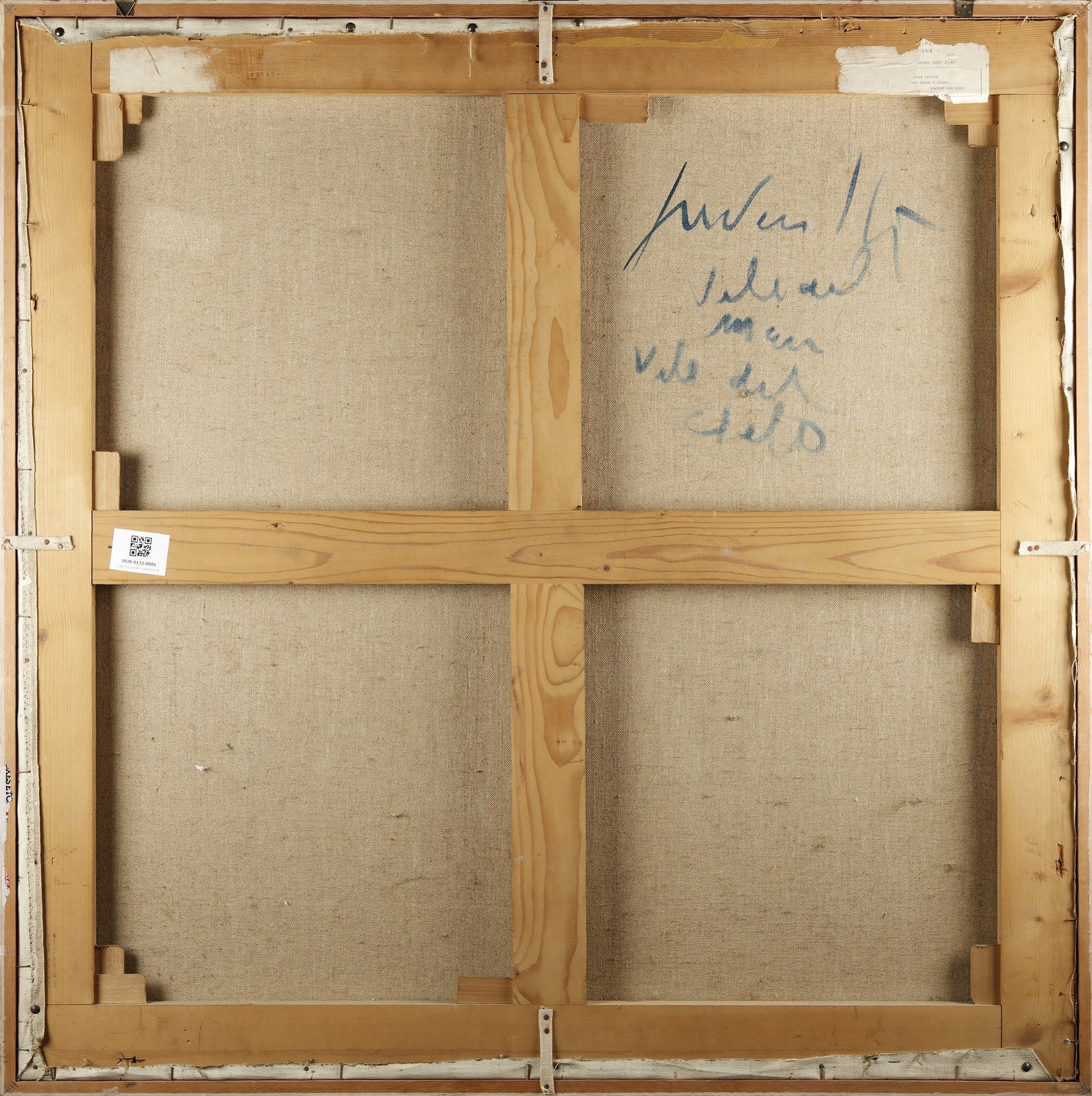 PEVERELLI CESARE (1922 - 2000) Senza titolo. Olio su tela . Cm 100,00 x 100,00. Firma in basso a destra e al retro. Certificato di provenienza e garanzia Peacock. Provenienza: Sesart's Auction House, 2016. Difetti. Cornice presente