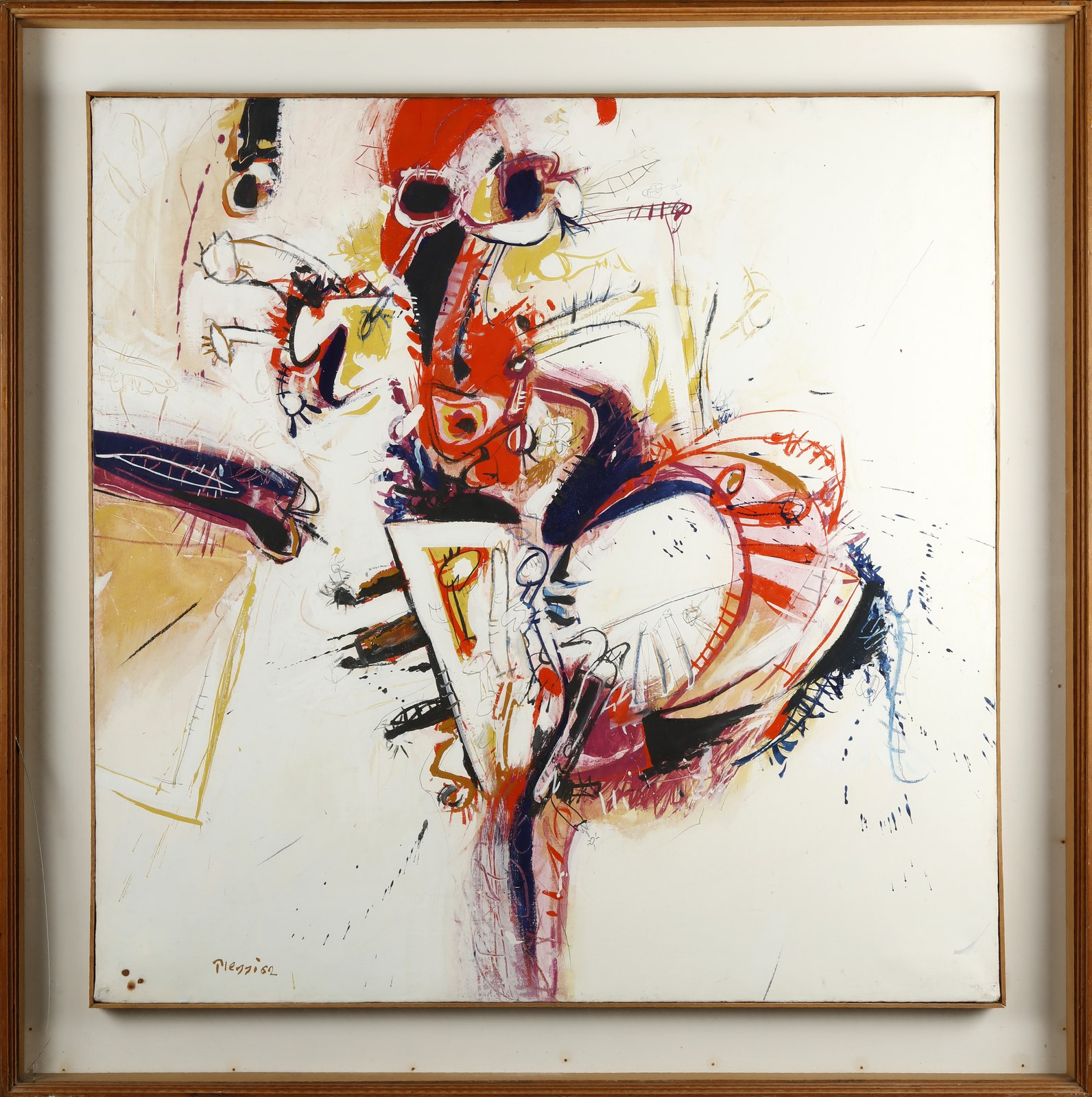 PLESSI FABRIZIO (n. 1940) Senza titolo. 1962. Tecnica mista su tela. Cm 70,00 x 70,00. Firma e anno in basso a sinistra. Cornice presente
