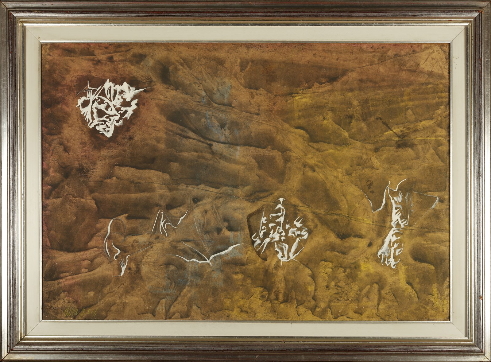 DOVA GIANNI (1925 - 1991) Spaziale. 1952. Tecnica mista su faesite. Cm 95,00 x 64,00. Firma e anno in basso a sinistra. Autentica dell'artista su fotografia. Provenienza: Collezione Costantino - Marino. Pubblicazione: Mostra a domicilio - 64 opere da collezione, Angiolino Calestani, Milano, 1 Ottobre - 6 Novembre 1991. Cornice presente