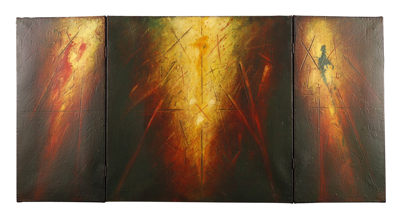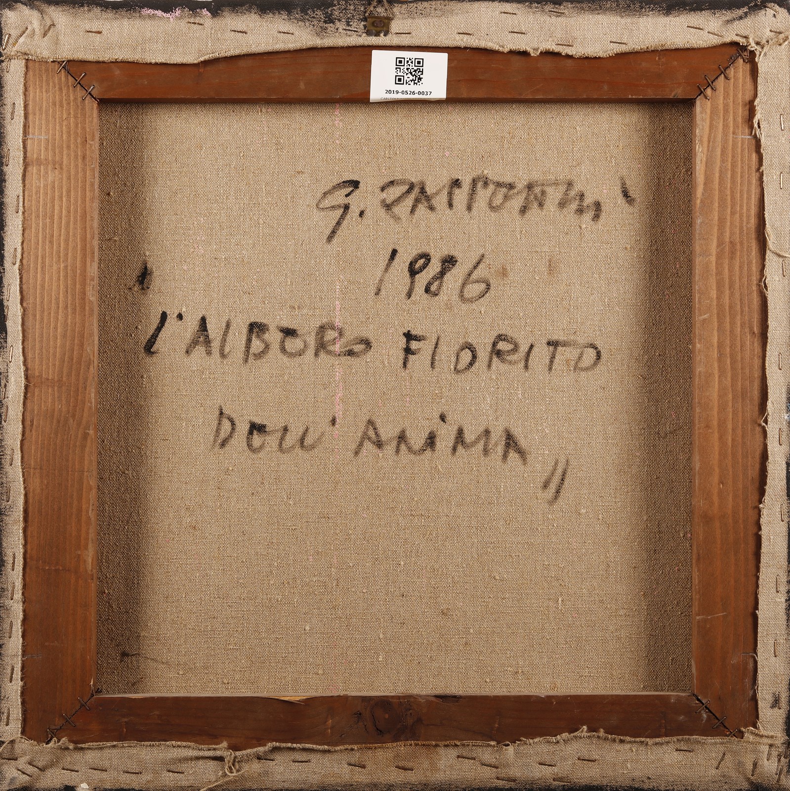 ZAPPETTINI GIANFRANCO (n. 1939) L'albero fiorito dell'anima. 1986. Olio su tela . Cm 113,00 x 57,00. Al retro titolo, firma e anno. Provenienza: Meeting Art, Vercelli,2008. Dimensione opera chiusa: 57x56 cm.