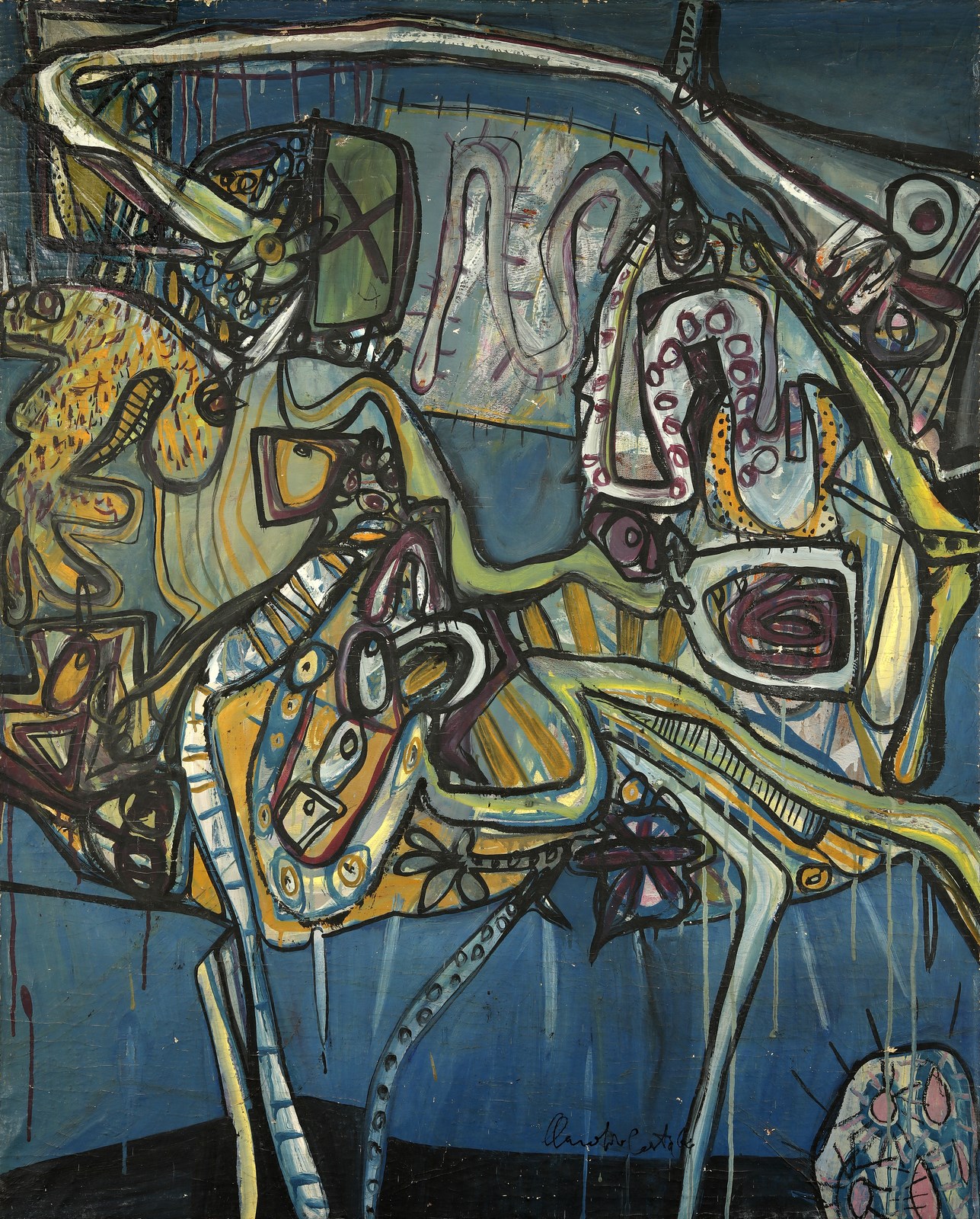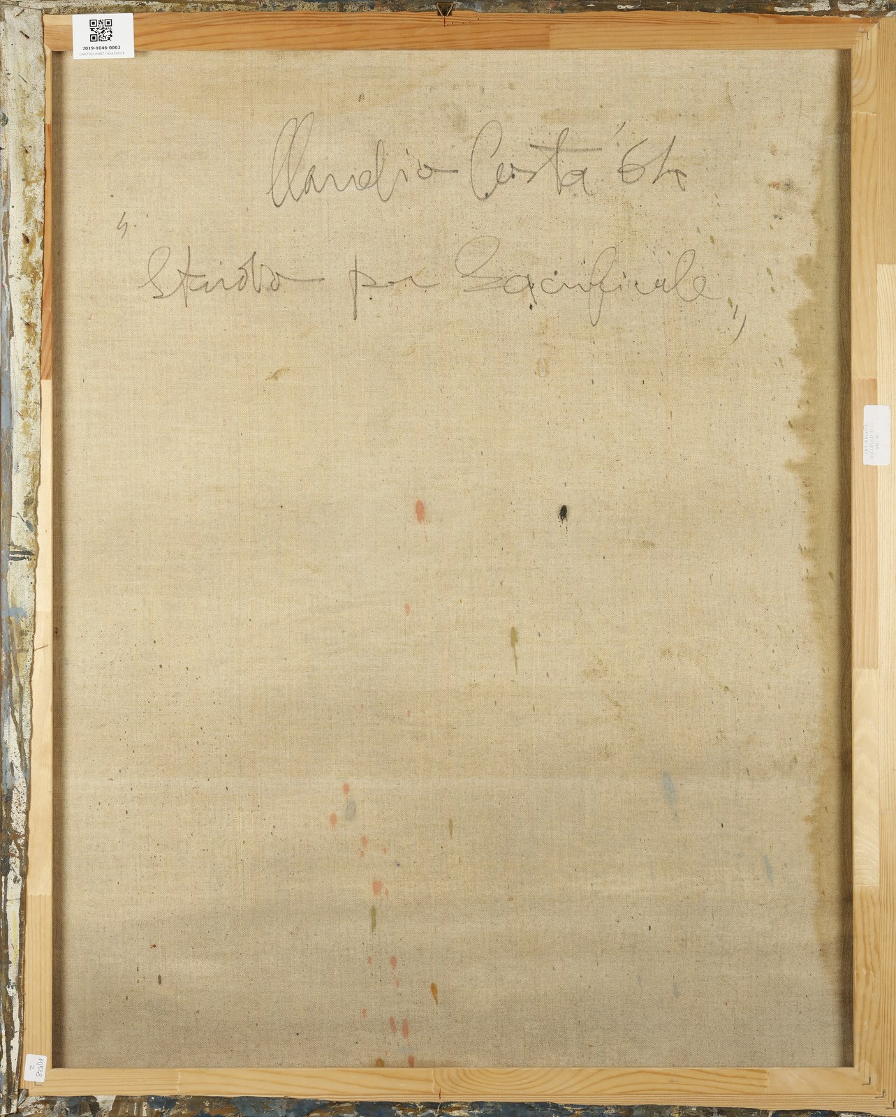 COSTA CLAUDIO (1942 - 1995) Senza titolo. 1964. Olio su tela . Cm 80,00 x 100,00. Firma e anno in basso al centro e al retro. Difetti.