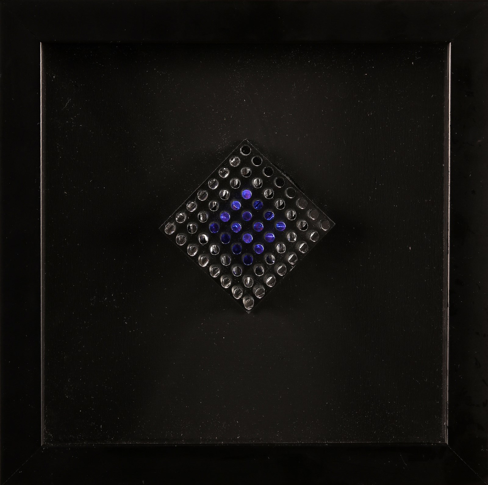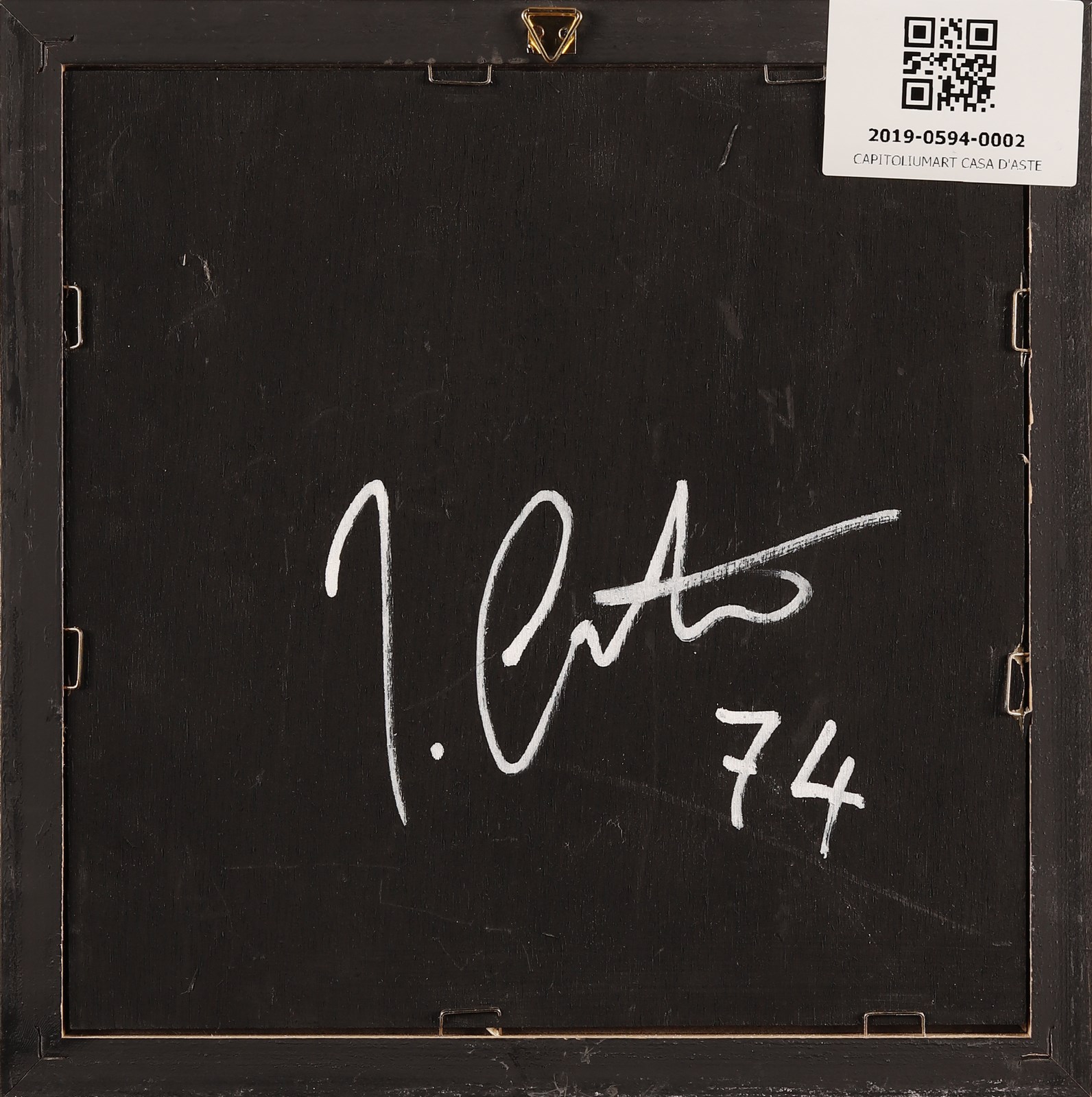 COSTALONGA FRANCO (n. 1933) Senza titolo. 1974. Tecnica mista su tavola. Cm 20,00 x 20,00. Al retro firma e anno. Autentica dell'artista su fotografia. Cornice presente