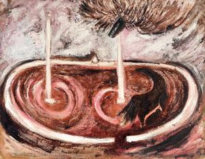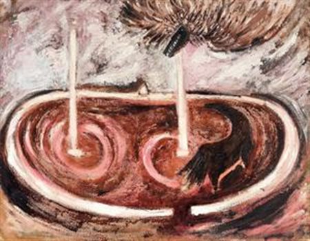 Marco Del Re Roma 1950 Senza titolo Olio su tela, cm. 70x90 Foto autenticata dall'artista.
