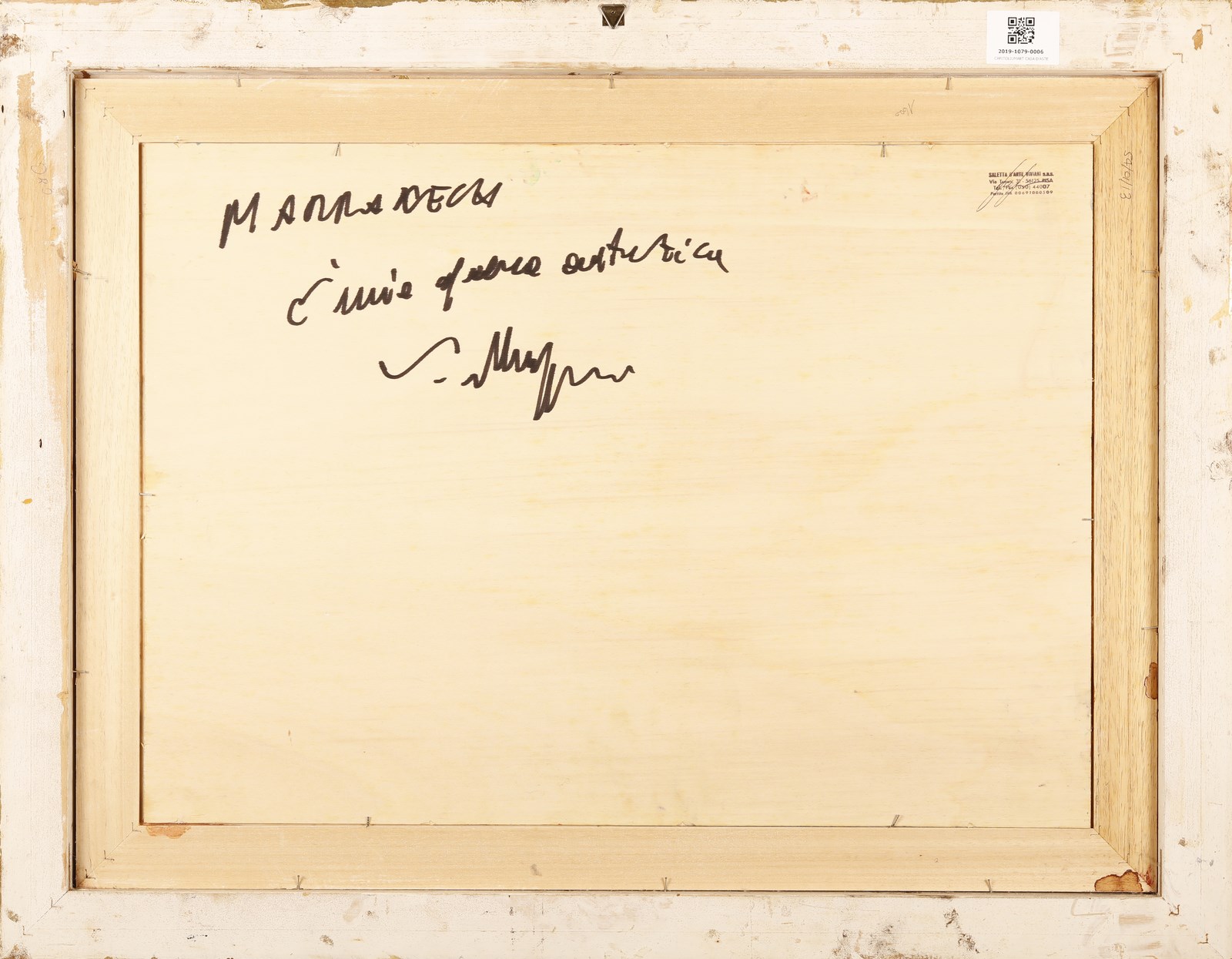 MAGAZZINI SALVATORE (n. 1955) Marrakesh. Olio su tavola. Cm 70,00 x 50,00. Firma in basso a destra. Al retro titolo e firma. Cornice presente