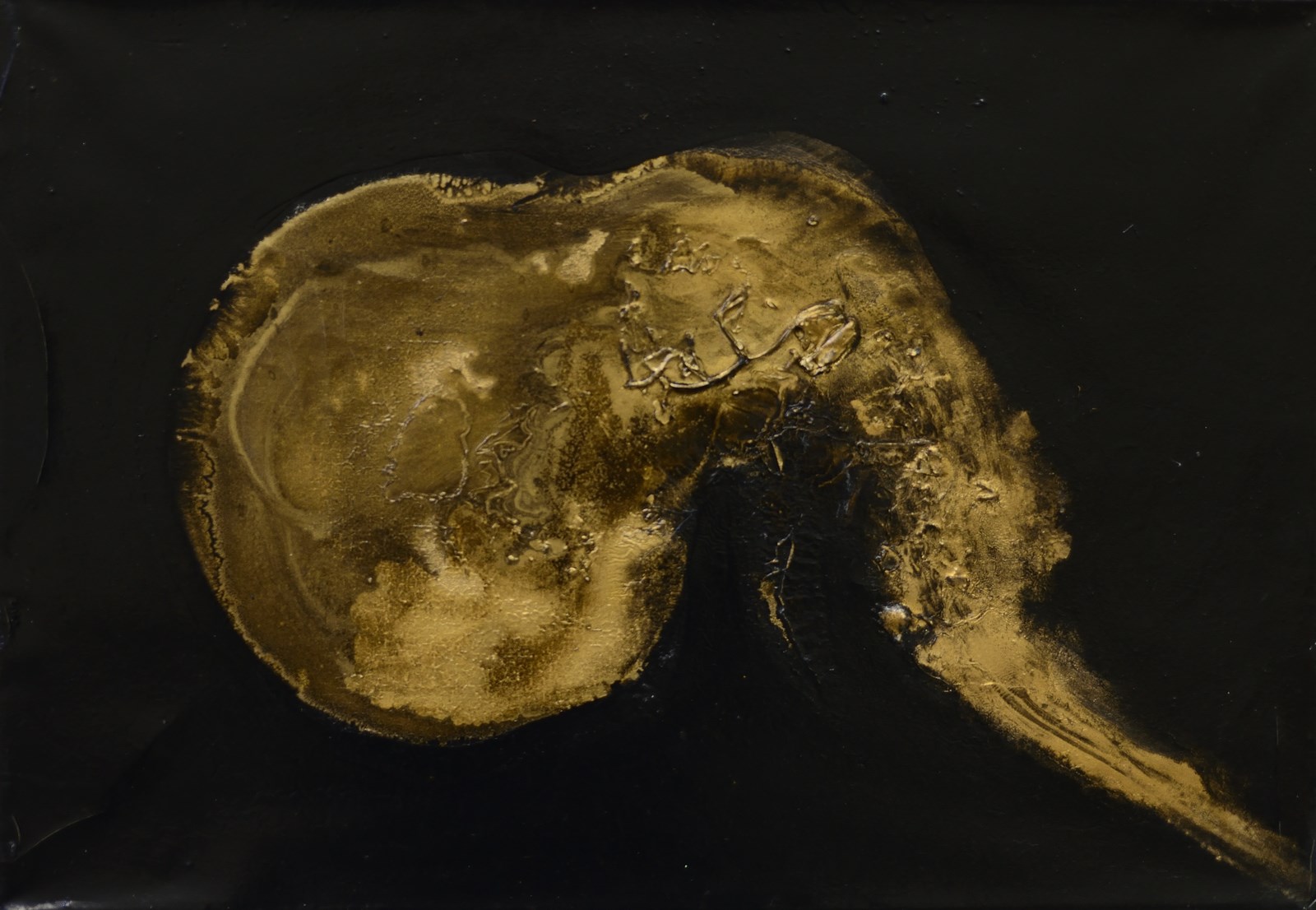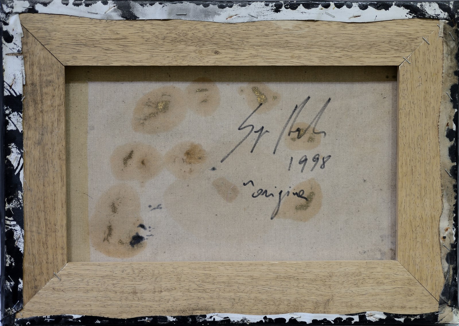 RAGALZI SERGIO (n. 1951) Origine. 1998. Smalti su tela. Cm 50,00 x 35,00. Al retro titolo, firma e anno. Difetti.