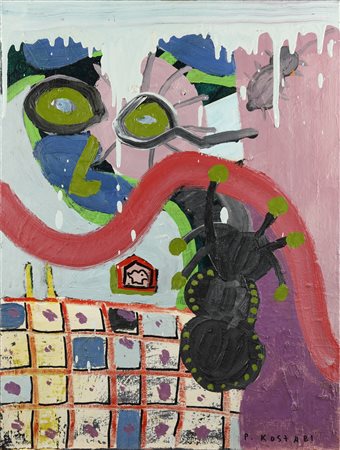 KOSTABI PAUL INDREK (n. 1962) Hetfield's Horse. 2003. Olio su tela . Cm 45,00 x 64,00. Firma in basso a destra. Al retro titolo, firma e anno.Certificato di autenticità Follin Gallery, New York.