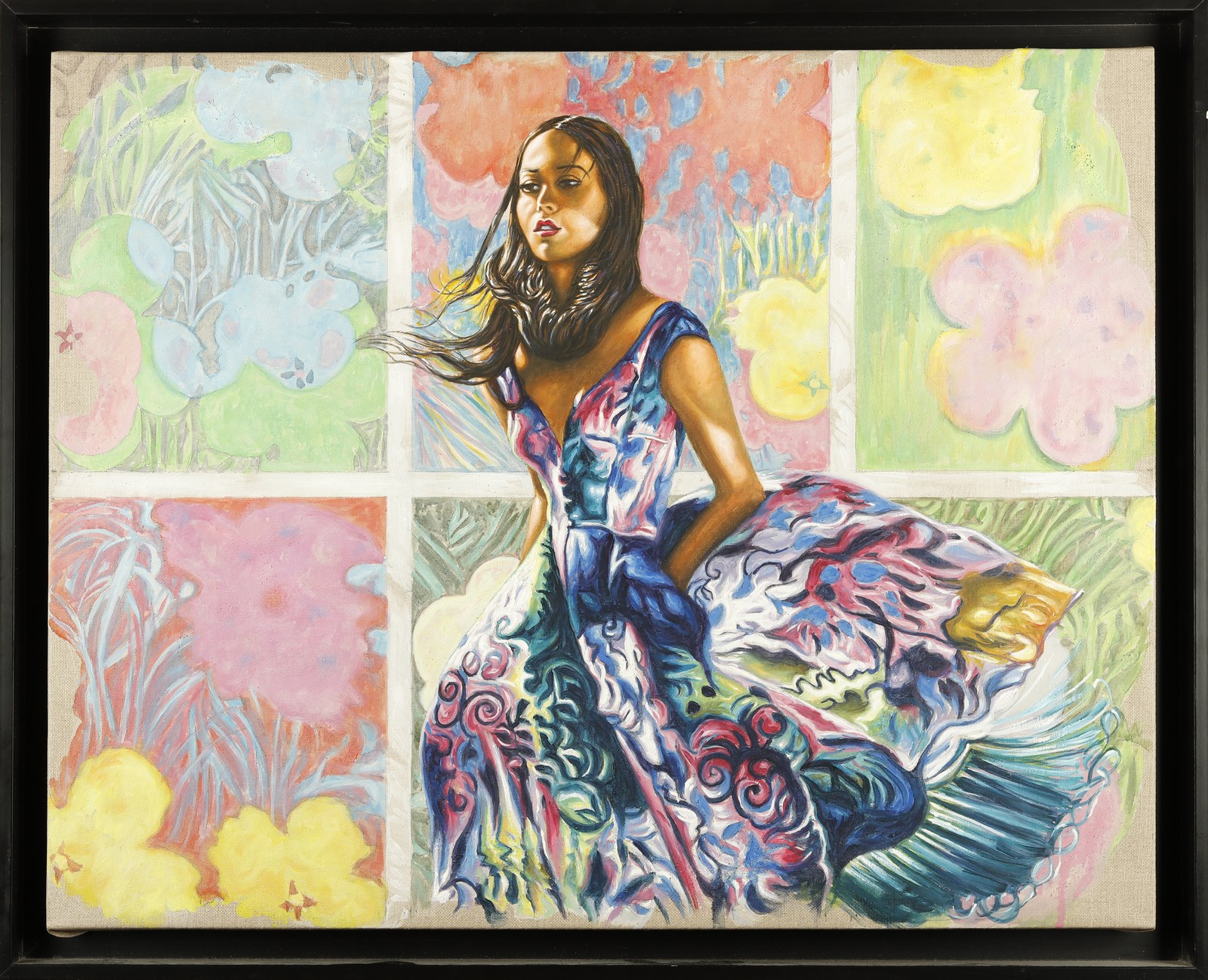 HASSOUN ALI (n. 1964) Flowers. 2013. Olio su tela . Cm 75,00 x 60,00. Al retro titolo, firma e anno. Certificato di garanzia DL Arte, Milano. Cornice presente