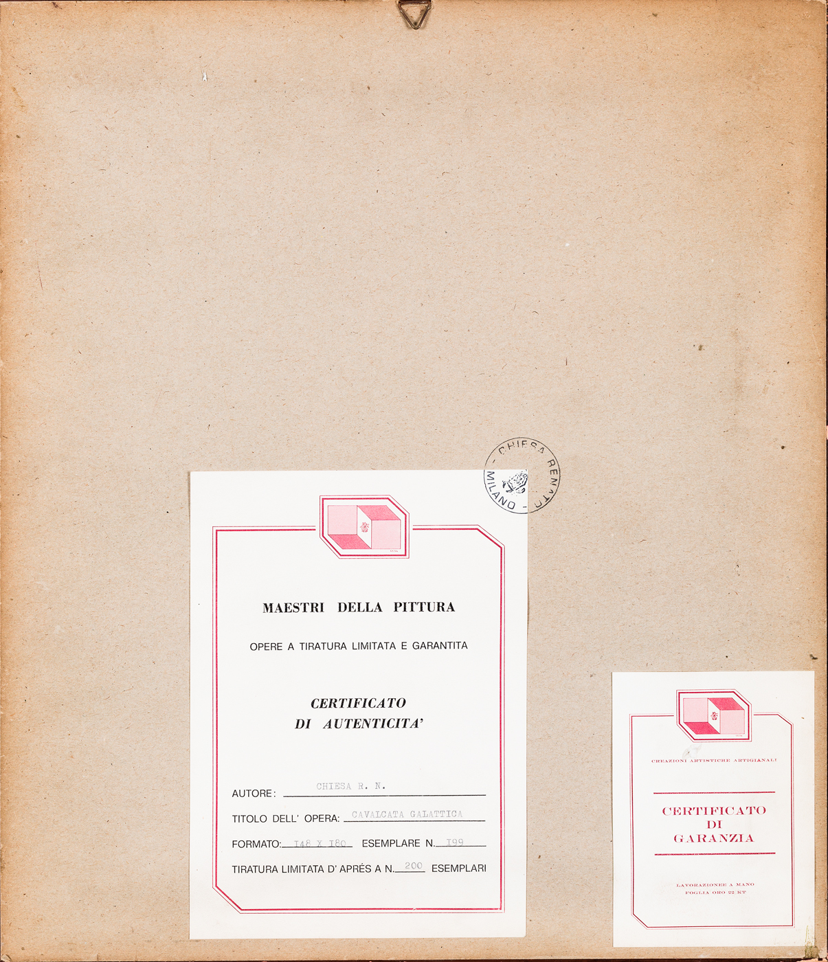 Certificato di autenticità con numerazione (Esemplare 199/200) al retro