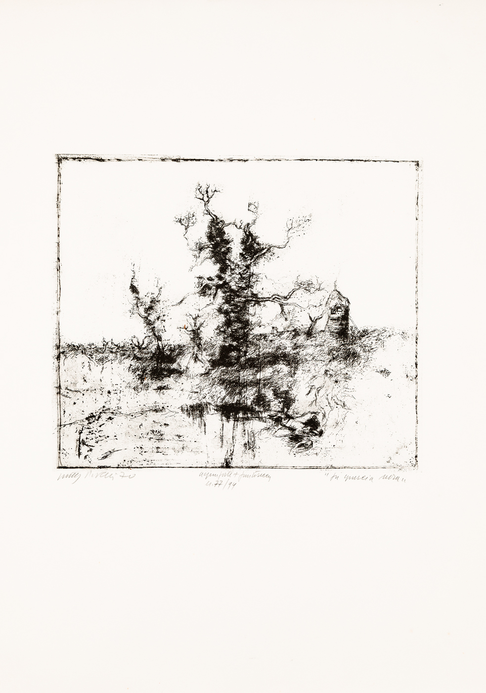 Firma, titolo, tecnica, datazione e numerazione (Esemplare 77/99) a matita al fronte