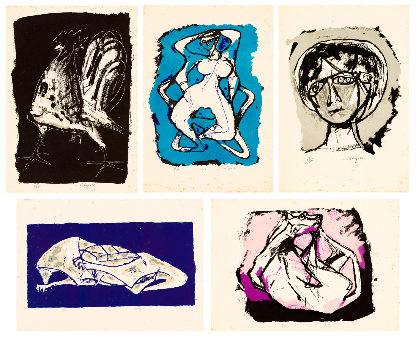 Cartella contenente 5 litografie, ciascuna recante firma e numerazione (Esemplari 87/100) a matita al fronte
