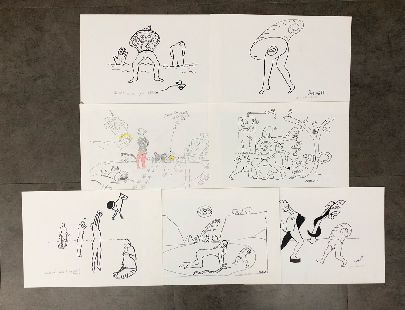 MARTINI - Senza Titolo, 1999 - Lotto di 7 tecniche miste su cartoncino