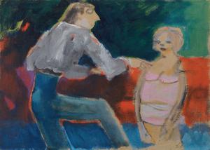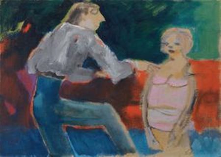 Mino Maccari Siena 1898 - Roma 1989 Figure, 1969 Olio su cartone applicato su tela, cm. 35x49,7 Firma e data in basso a destra: Maccari / 1969. Certificato su foto Archivio delle Opere del Maestro Mino Maccari, Cinquale, 23/6/99, con n. 2625.