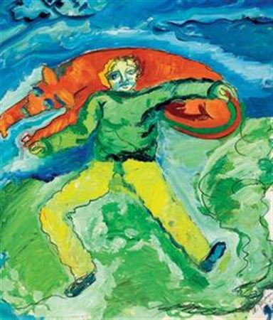 Mimmo Germanà Catania 1944 - 1992 Figure, 1982 Olio su carta applicata su tela, cm. 57,5x49 Firma e data in basso a destra: Mimmo Germanà / 3-1982. Al verso, sulla tela e sul telaio: timbro Galleria d'Arte "L'Acquario" / Giulianova (Te). Certificato con foto Archivio generale dell'opera di Mimmo Germanà, 18/10/2011, con n. 311T198290.