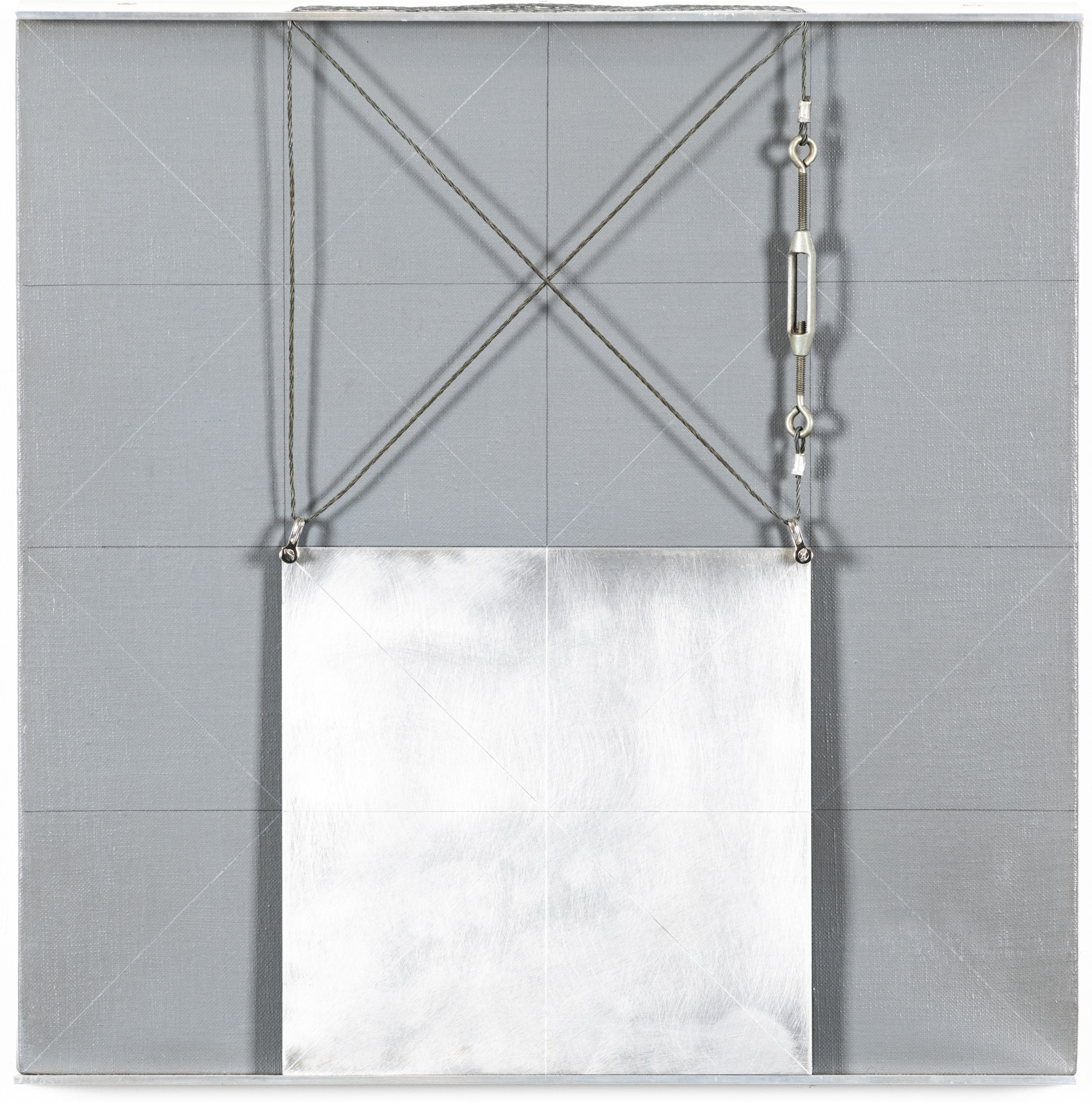 Acrilico su tela, cavi e placca in alluminio, cm. 50 x 50 x 2