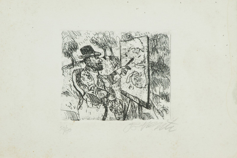 Antonio Possenti Autoritratto Acquaforte di cm. 9x11, su carta di cm. 17,5x25, es. 50/80 La carta presenta fioriture. Firma in basso a destra, tiratura in basso a sinistra.