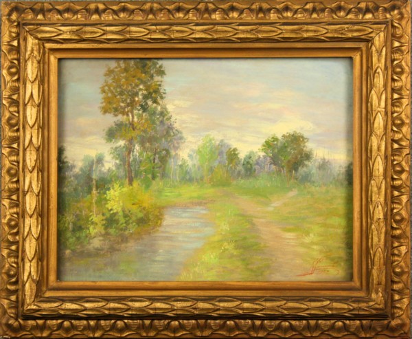 Firmato. LAURENTI NICOLA - Nato a Ferrara nel 1873. Morto a Milano nel 1943. Ha partecipato a numerose esposizioni collettive nazionali, tra queste la Triennale di Milano del 1900, l'Internazionale Veneziana del 1901 e la Promotrice Torinese del 1902. Dipinto olio su cartone raff. ''PAESAGGIO''. Firmato e datato 1932 in basso a destra. In cornice. Mis. Lung. cm. 39 Alt. cm. 30 ca.
