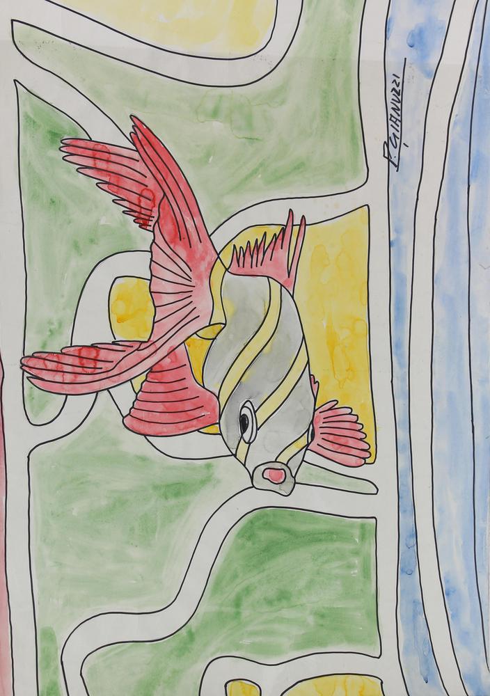 Piero Gianuzzi STUDIO PER VETRATA tecnica mista su carta, cm 75,5x53 firma
