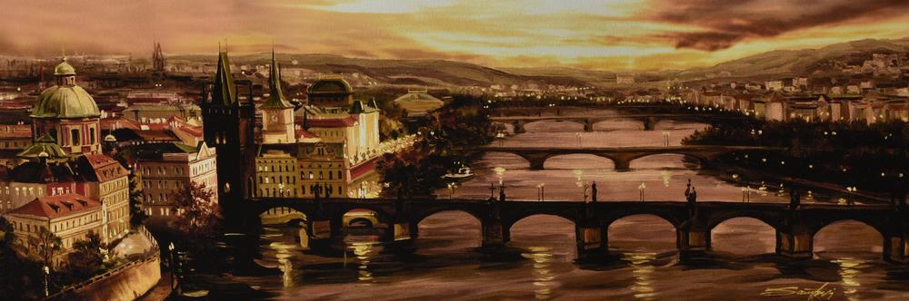 Lot 151 | Ignoto VEDUTA DI PRAGA tempera su cartone, cm 21x60 firma