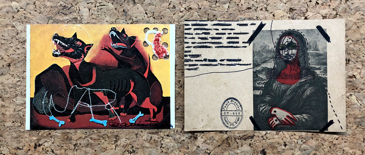 Opere di mail art indirizzata a Gino Gini, curatore della collettiva di 'Mail Art' tenutasi presso Galleria Mastrogiacomo - Images 70, Padova, dal 27/09/1980 al 24/10/1980