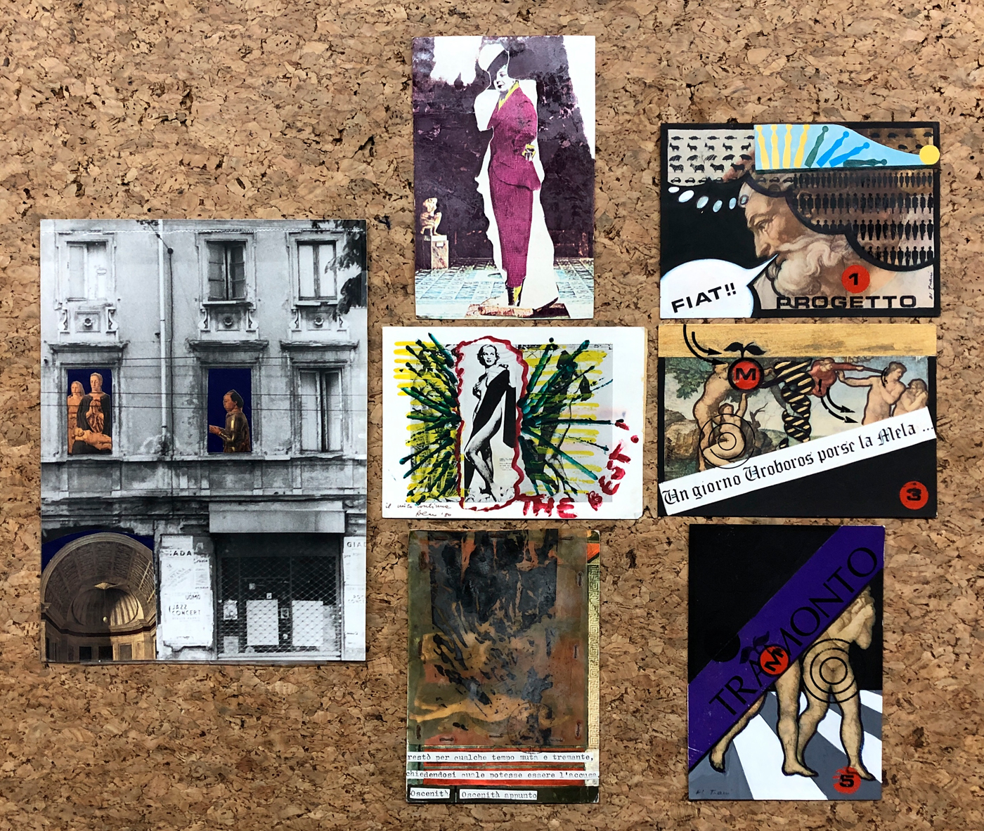 Opere di mail art indirizzata a Gino Gini, curatore della collettiva di 'Mail Art' tenutasi presso Galleria Mastrogiacomo - Images 70, Padova, dal 27/09/1980 al 24/10/1980