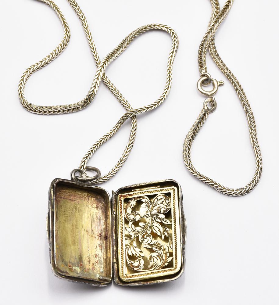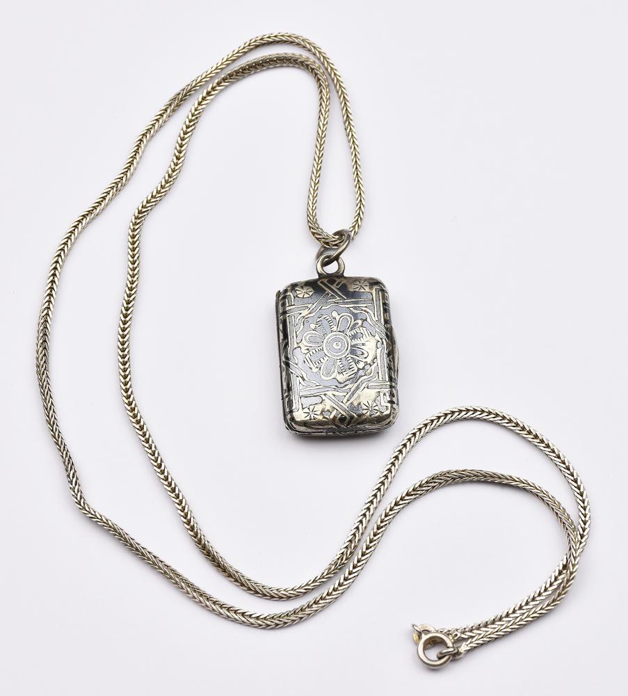 Lot 15 | PENDENTE PORTAFOTO IN ARGENTO NIELLATO CON CATENA IN ARGENTO Italia, inizio...