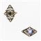 uno con montatura bombata in argento e oro giallo decorata da uno zaffiro sintetico rettangolare e da rose di diamante; uno con montatura in argento e oro rosa a basso titolo traforata a volute decorata al centro uno zaffiro ovale e da rose di diamante
