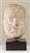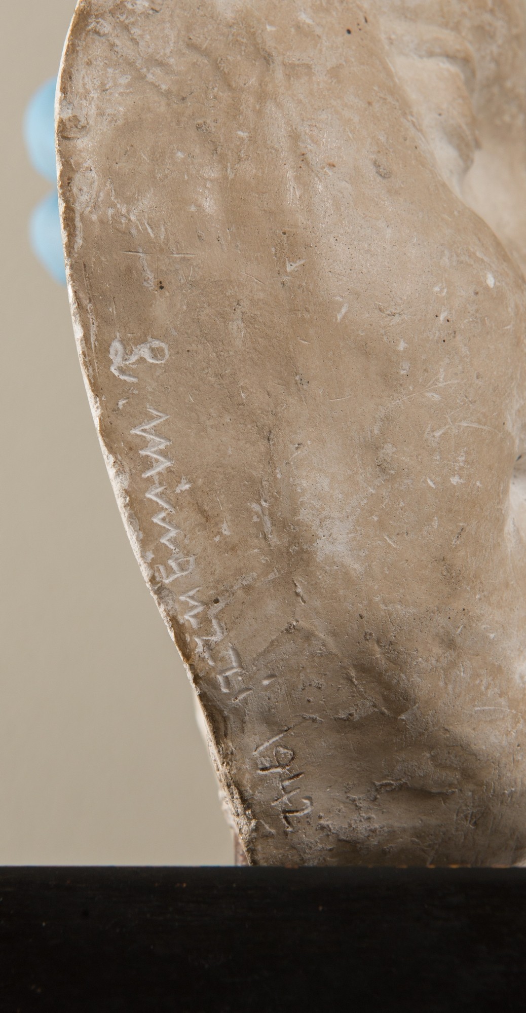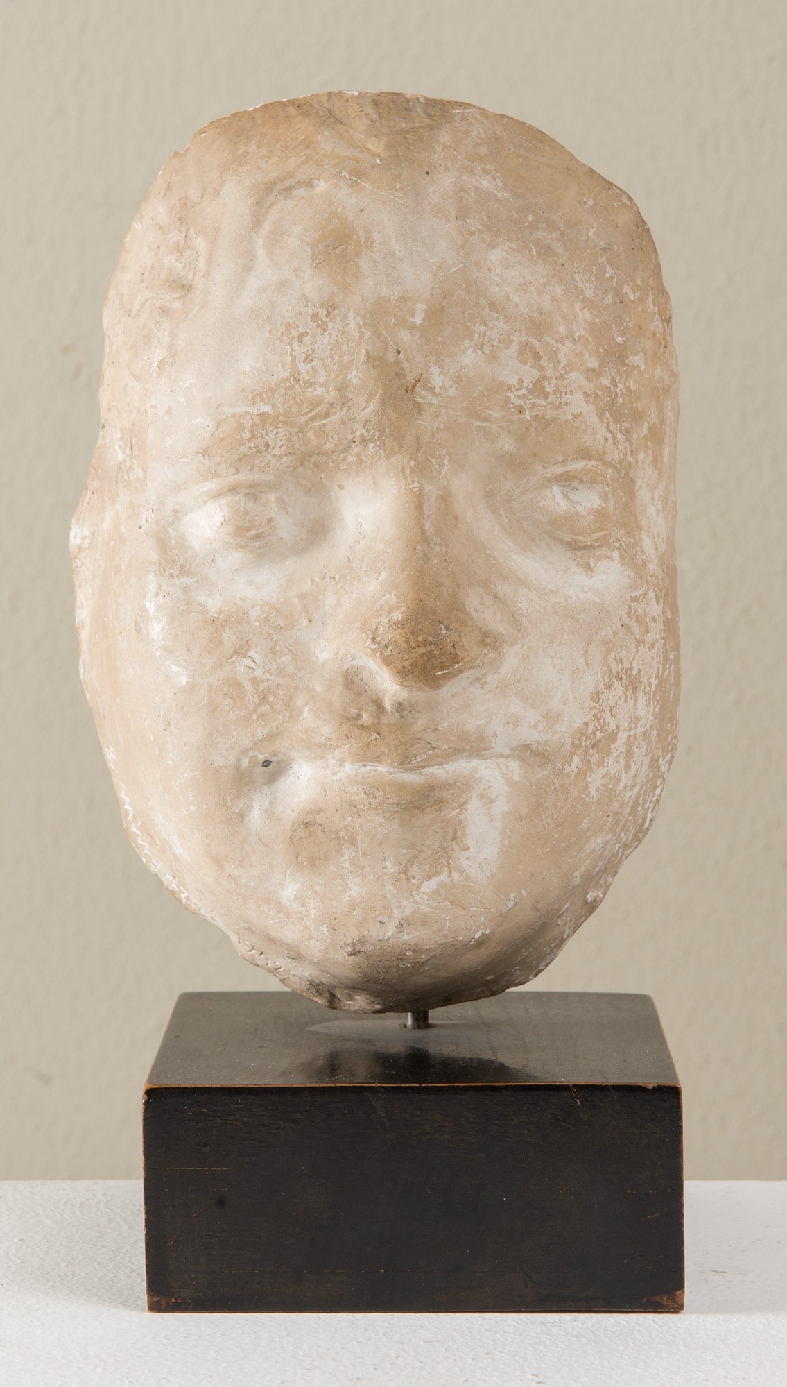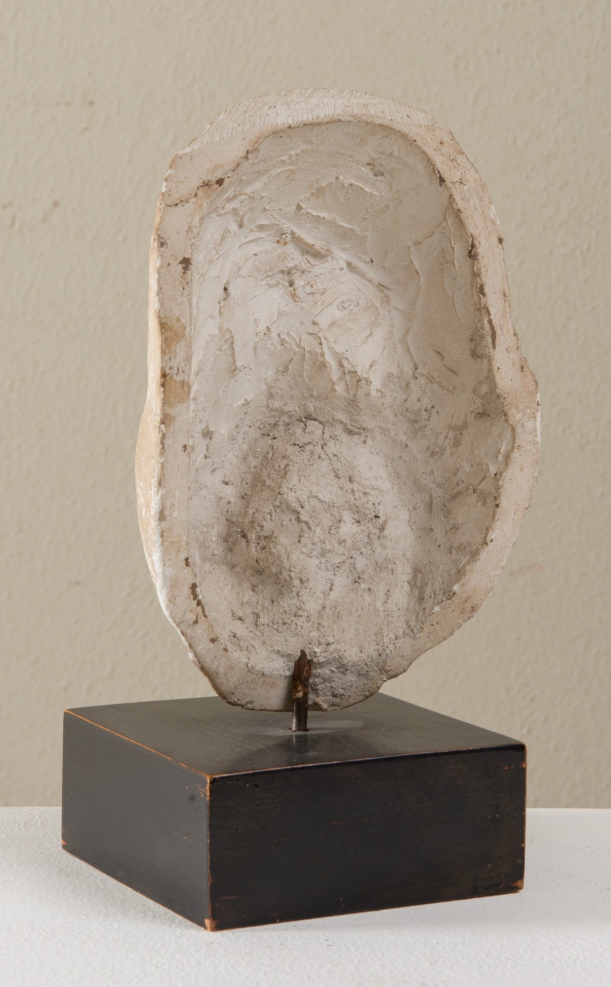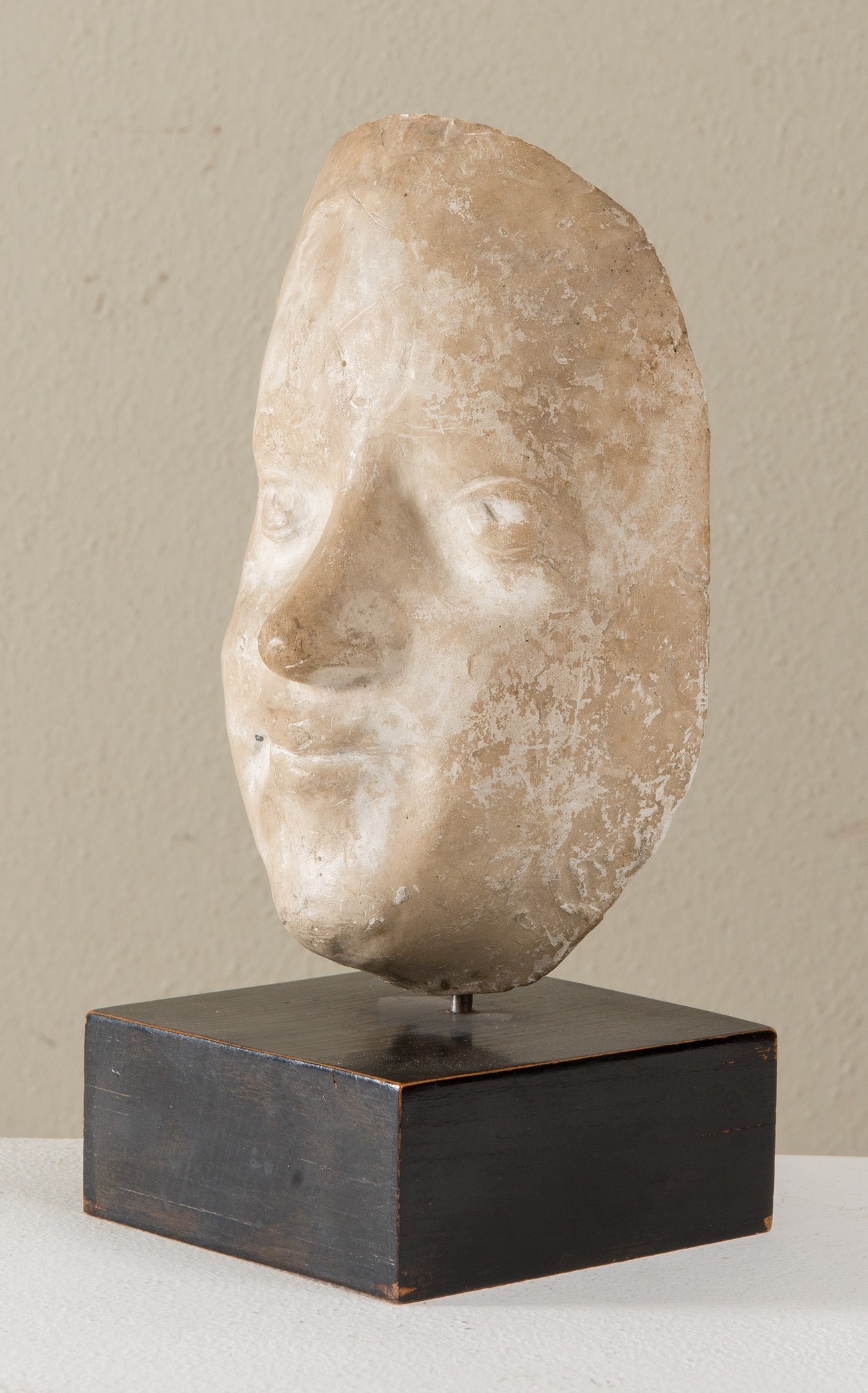 LUCIANO MINGUZZI (Bologna 1911 - Milano 2004). “Maschera”, 1942. Scultura in gesso (montata su base in legno di ebano). Cm 23x14x8. Opera firmata e datata “L. Minguzzi 1942”.
