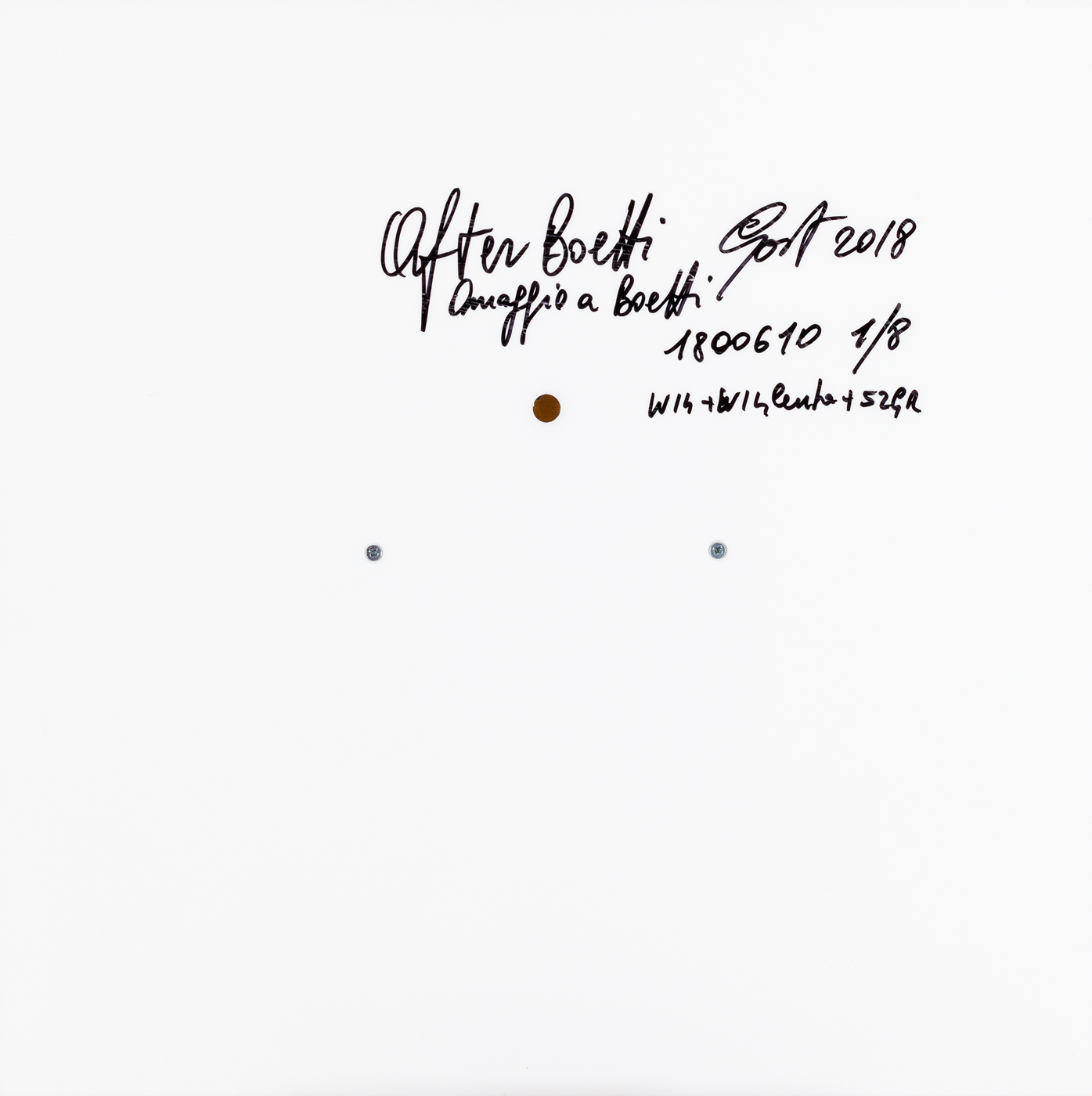 Firma, titolo, numerazione (Esemplare 1/8) e datazione al retro