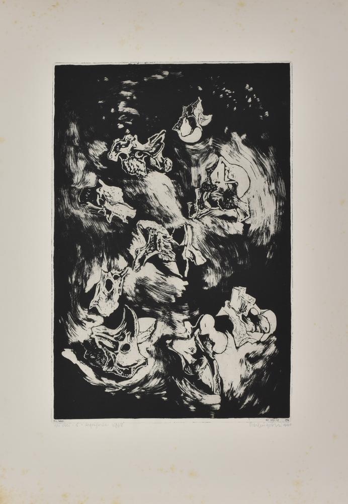Pierluigi Arri GLI OSSI acquaforte su carta, cm 70x50 (lastra cm 50x33)...