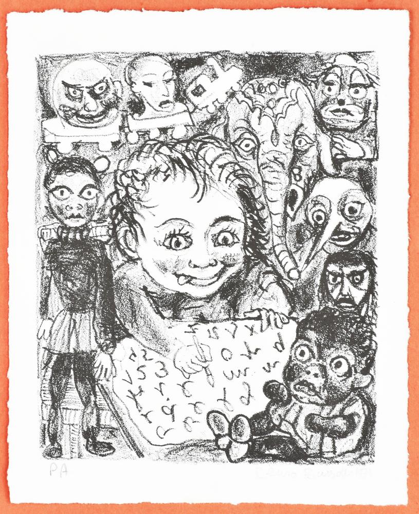 Renzo Bussotti LA SCUOLA litografia su carta, cm 20x16 esemplare prova...