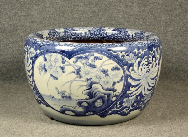Firmato. Esemplare: 20 di 32. Cachepot in porcellana azzurra. Cina. Inizi XX secolo. Mis. Alt. cm. 32 Diam. cm. 55 ca.