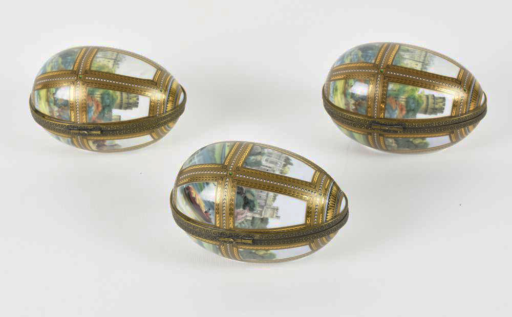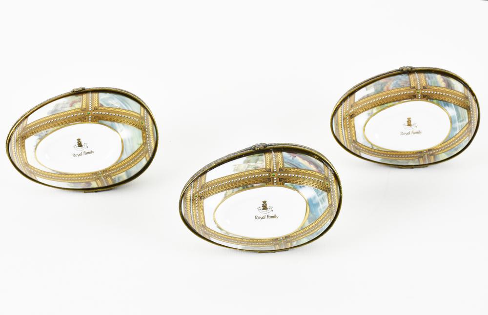 LOTTO DI 3 SCATOLE IN CERAMICA con decorazioni in oro zecchino con montatura...