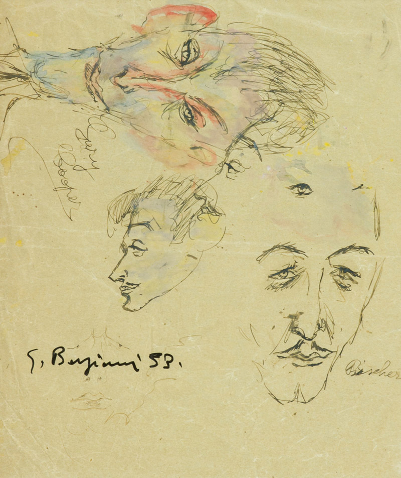 Guido Borgianni Lotto unico di due Opere - "Volti", 1953, Tecnica mista su...