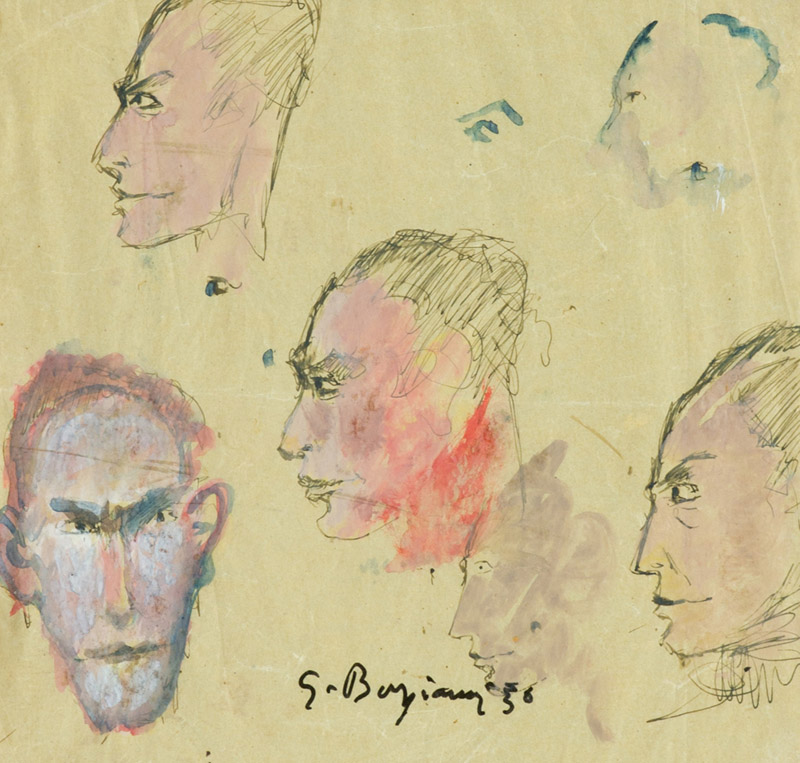 Guido Borgianni Lotto unico di due Opere - "Volti", 1953, Tecnica mista su carta, cm. 40x35, firma e data in basso a sinistra; - "Volti", 1956, Tecnica mista su carta, cm. 33,5x34,5, firma e data in basso al centro. Entrambi le carte presentano imperfezioni.