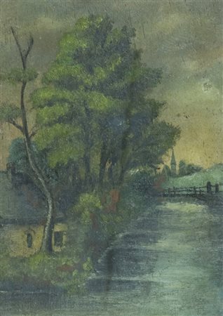 Anonimo Paesaggio Olio su tavola, cm. 15x10,5