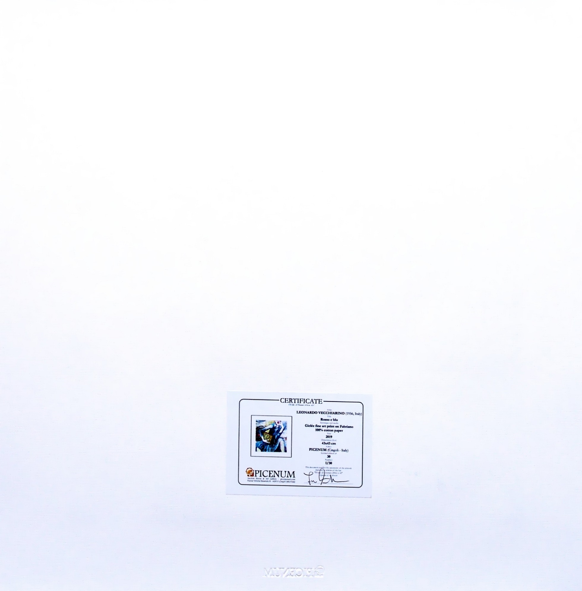 certificato di autenticità e timbro a secco dell'editore Picenum